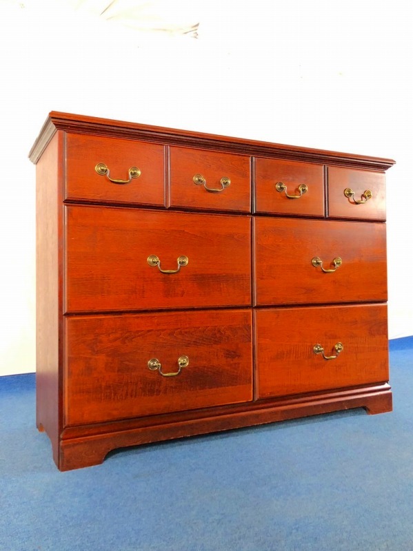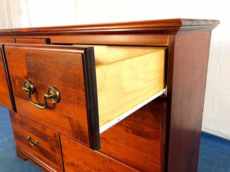 【米軍放出品】3段チェスト サイドボード 引き出し ドレッサー ワイドチェスト 収納家具 アンティーク アメリカ家具 ☆BJ6KM-W#25