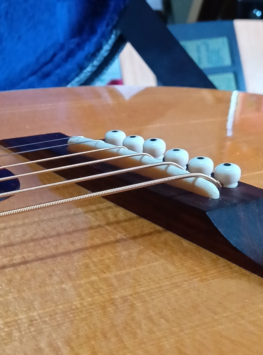 サドルは最高級素材 こちらも四角柱から削り出し制作 交換 この際に弦高調整を行ってもらいました。