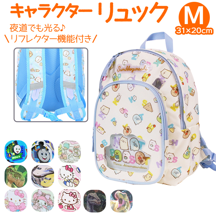 商品説明 | ・・キャラクターデザインが可愛い荷物がたくさん入るキッズリュックのMサイズが登場。 ・容量は約8LでB5サイズ対応のメインルーム♪ノートや600mlの水筒が縦に入る高さ! ・薄手の長ズボンや洋服も2枚ずつ入り、少し遠くのお出かけに便利。また、開口部はダブルファスナーで大きく開き、お弁当箱など出し入れやすいのが特徴! ・メインルーム内はオープンポケットと名前を記入できるネームタグ付き。 ・フロントにファスナーポケット×1を装備。小物が多くなっても仕分けて入れられる◎(※すみっコぐらしシリーズのみファスナーポケットの中にオープンポケットがございます。) ・フロントとショルダーベルト部分にはループテープが付いており、防犯ブザーや目印になるキーホルダーの取り付けに最適。 ・さらにそれぞれキャラクターのワッペンが付いている特徴あるデザイン!(※すみっコぐらしシリーズのみ、クリア窓仕様です。) ・さらにフロントのロゴとループテープ、ショルダーベルトのテープに夜道でも光るリフレクター機能付き。 ・背面とショルダーベルトは長時間背負っていても疲れにくく蒸れにくいクッション材が入ったメッシュ素材を採用。ショルダーベルトには、ズリ落ちを防ぐチェストベルト付き。 ・お出掛けやアウトドアイベントがもっと楽しくなる!男の子にも女の子にも人気のキャラクターデザインをラインナップ。 |