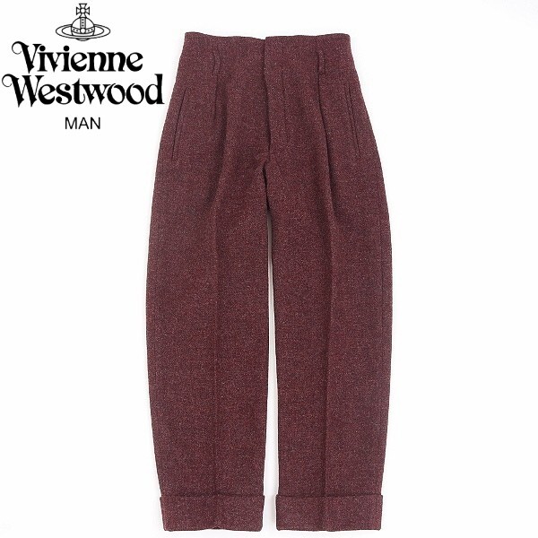 【HA605】美品◆Vivienne Westwood MAN ヴィヴィアンウエストウッド マン ウール タック ハイウエスト パンツ ワインレッド 46 | |