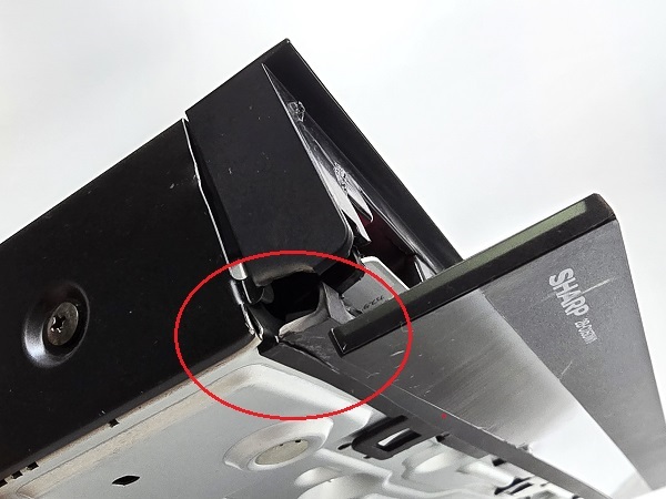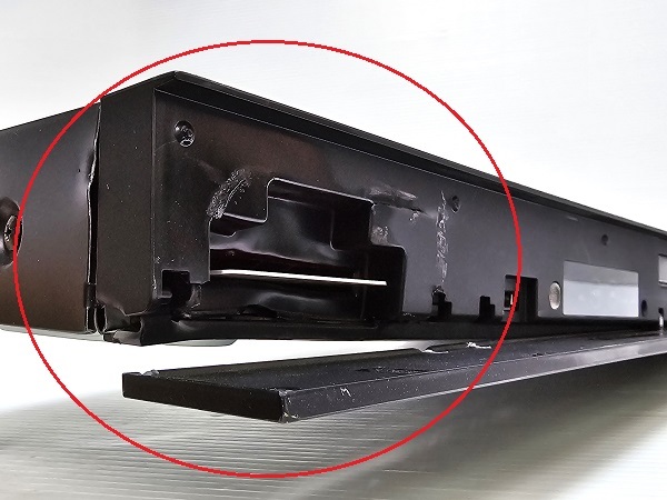 表面カバーの片方のツメが折れている為、カバーが開いた状態のままになっています。(写真6枚目)