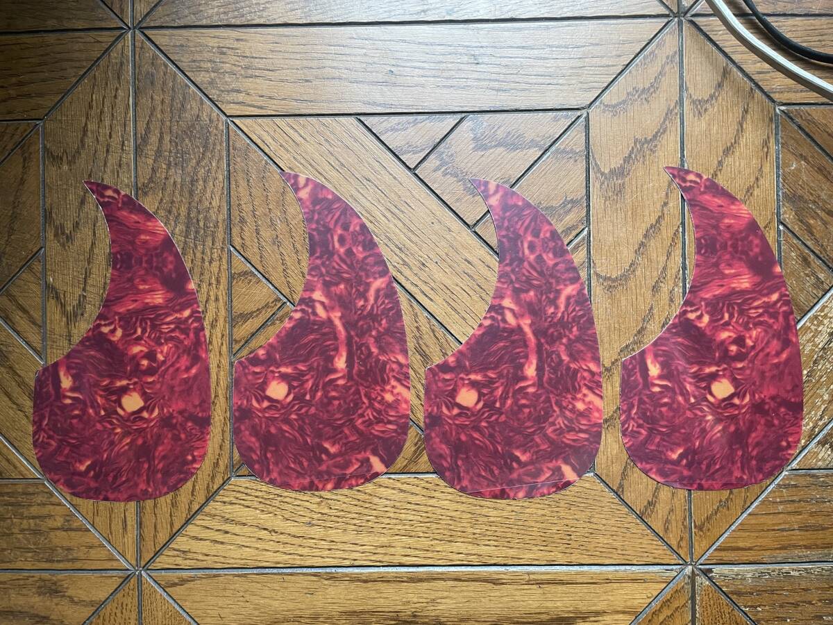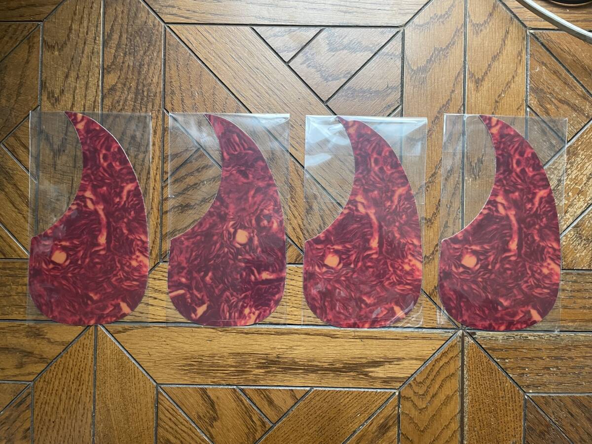 在庫品限定半額セール アコースティックギター用ピックガード 鼈甲調RED 粘着シート付18×10cm 4枚 \2.000→\1.000即決 TD