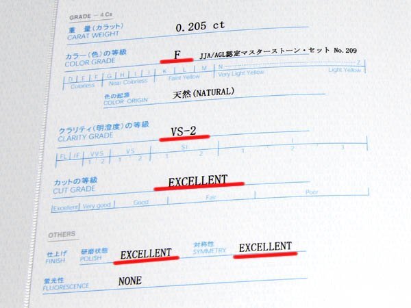 ◆Foulason 【ブランド刻印あり】 ◆天然ダイヤモンド ●3EXCELLENT:ハート&キューピッド ●クラリティ:VS-2 ●カット:EXCELLENT ●カラー:F ●0.205ct 【ct数の刻印あり】 ◆付属品【中央宝石研究所】発行 ダイヤモンドグレーディングレポート&プロポーションレポート】 |