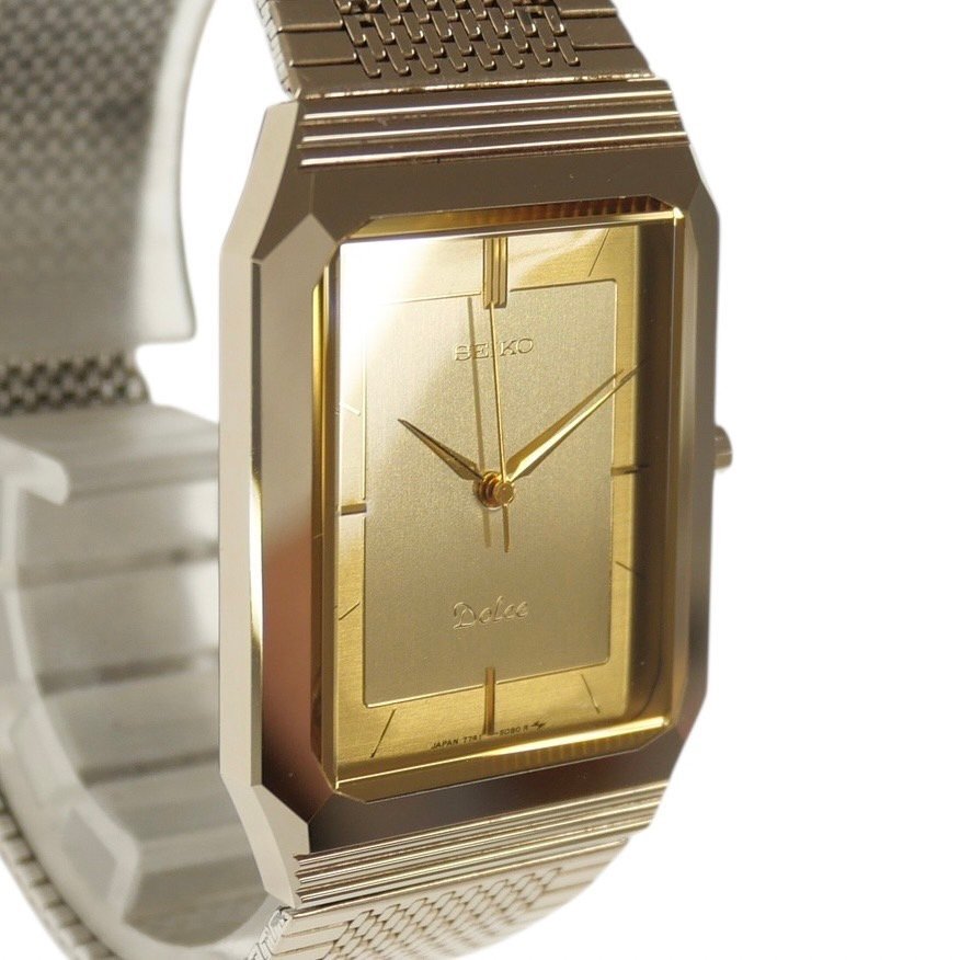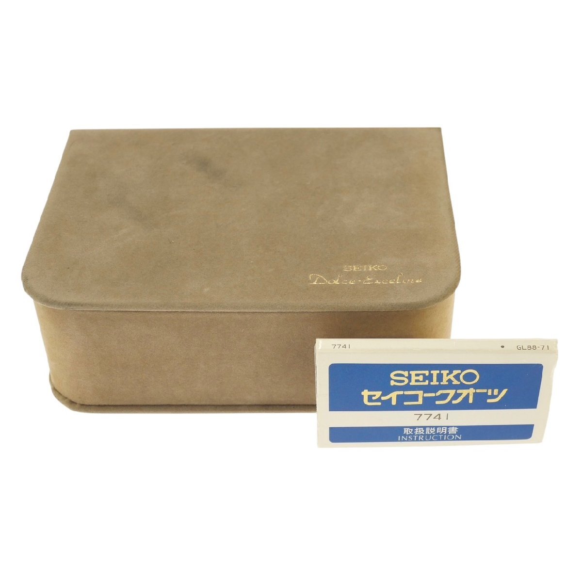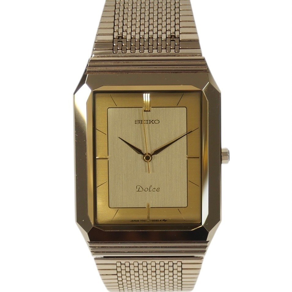 【商品詳細】 ※ブランド:SEIKO セイコー ※商品名:ドルチェ ※型番:7741-508A ※フェイス:約26mm ※腕周り:約15cm ※素材:ステンレススチール ※ムーブメント:クォーツ ※文字盤:ゴールド ※稼動状態:動作未確認 ※付属品:保存箱/取扱説明書 【商品状態】 ※風防に特筆すべき傷や汚れはなく綺麗な状態です。 ※ケース、ベルトに小傷がございますが、比較的綺麗な状態です。 ※動作未確認の為、電池交換後の動作保証は致しかねます。 ほか、商品画像を参考にご検討ください。 ご不明な点は入札前にご質問ください。 【 ご入札される前に必ずお読み下さい 】 ※「新規アカウントの方」・「評価が5件未満の方」の入札は原則お断りしております。 (いたずら入札/トラブル防止の為) 善意の入札希望の方は、入札前に質問欄より「入札のご意思」をお知らせください。 事前にお知らせなくご入札頂いた場合には、予告無しに「入札取り消し」させて頂きます。 ※「良い評価の割合が90%以下方」の入札はお断りしております。 (いたずら入札/トラブル防止の為) 入札及び落札がありました場合は、予告無しに「入札取り消し」及び「落札者都合による削除対応」をさせていただく場合がございますので予めご了承下さいませ。 ※当出品物は「評価不要」のご要望にはお応え出来ませんので予めご了承下さいませ。 |
