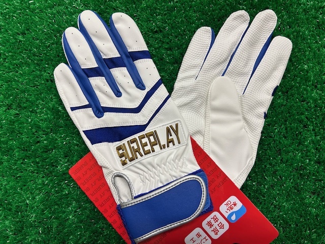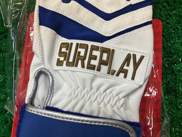 送料無料・SP シュアプレイ・ バッティング手袋・M:白x青・新品