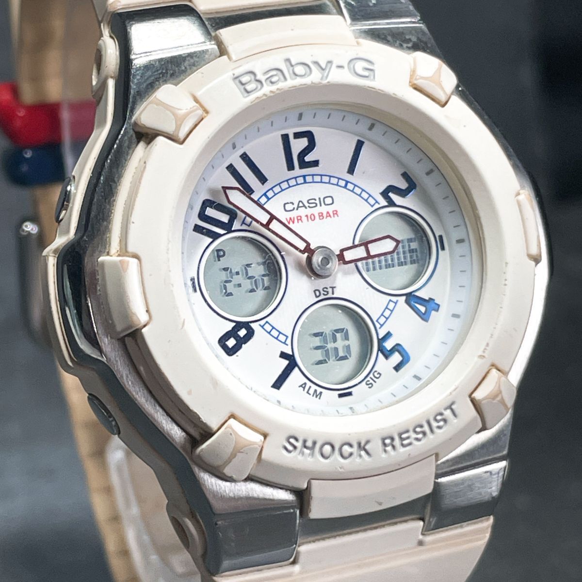 美品 CASIO カシオ Baby-G ベビージー BGA-110TR-7B 腕時計 アナデジ クオーツ 多機能 カレンダー ホワイト ラバーバンド 動作確認済み