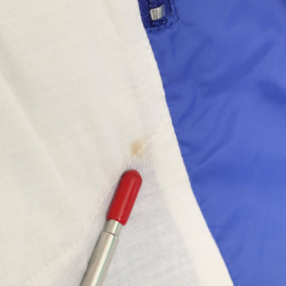 【商品管理番号】 A3719 【ブランド】 NIKE/ナイキ 【サイズ】 XL 【実寸サイズ】 肩幅:約64cm 着丈:約68cm 身幅:約72cm 袖丈:約61cm 【主な素材】 表地 : ナイロン 裏地 : 13897 【色】 ブルー 【仕様】 スポーツ トラックジャケット 【状態】 特記事項: 数ヶ所に汚れ |
