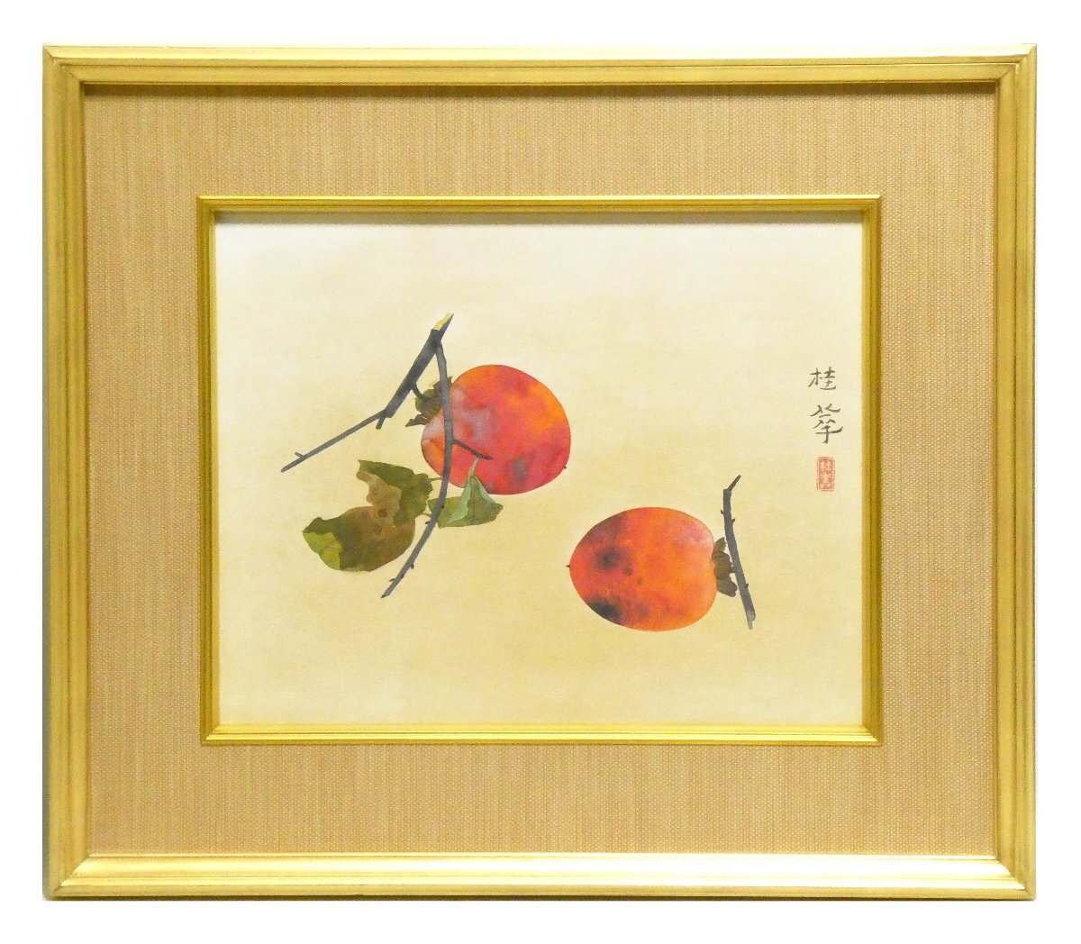 品格漂う厳格な花鳥画を得意とする日本画家・金島桂華画伯。 師:竹内栖鳳画伯の傾向を受け、写実を基盤とし、真面目で穏健な作風で多くの作品を手がけました。 真っ赤に熟れた大ぶりの柿。ずっしりと重みのある豊かな実りが、秋の訪れと趣を感じさせます。 日本画・金島桂華コレクターにおすすめの直筆・一点ものです! |