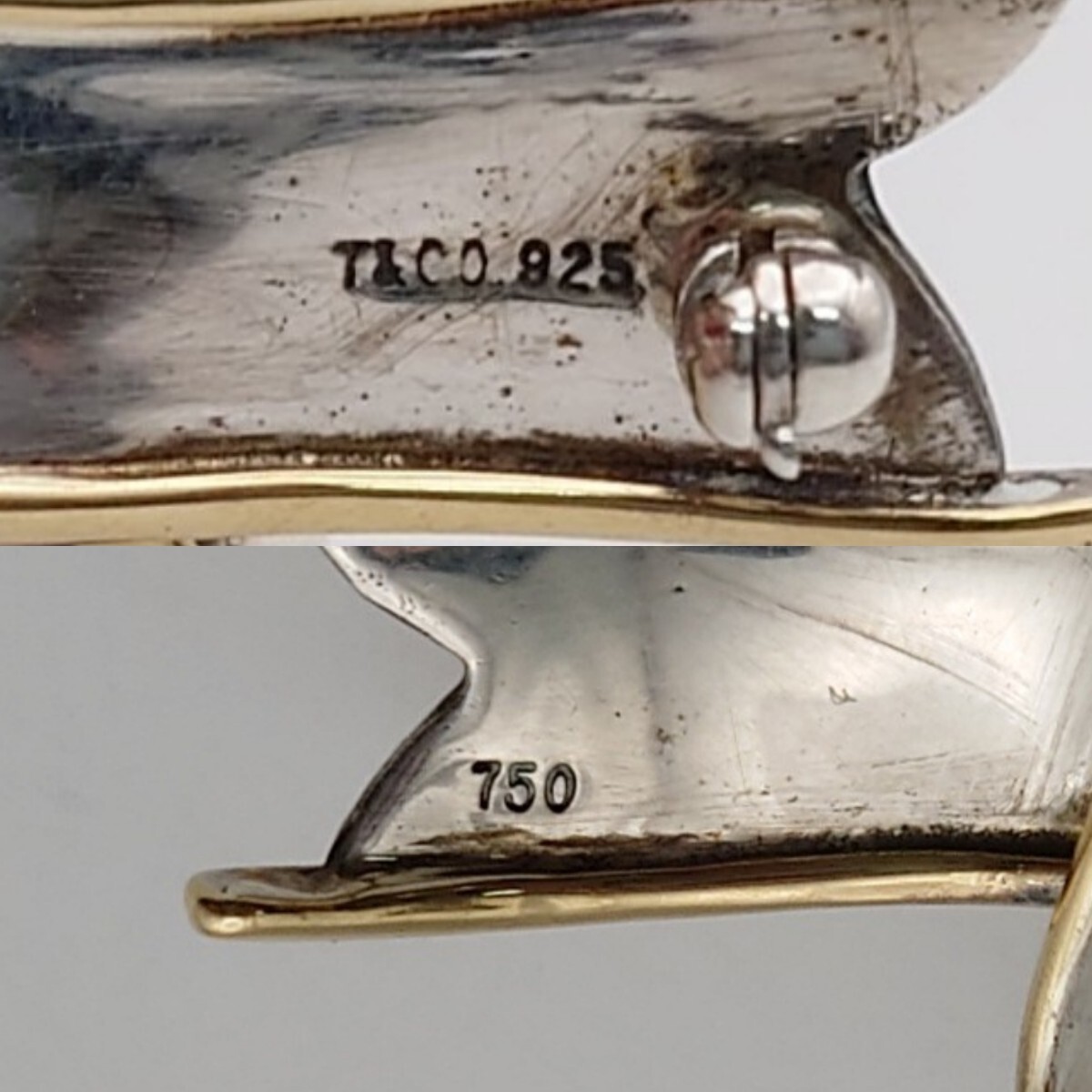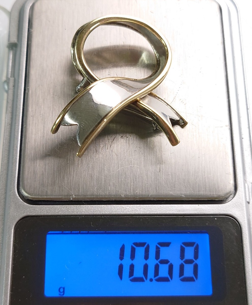 TIFFANY&Co. リボン ブローチ ティファニー SILVER 925 18金 750 刻印 金製品 銀製品 約10.6g ゴールド シルバー コンビ