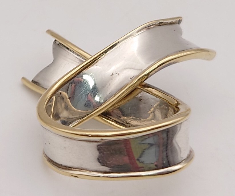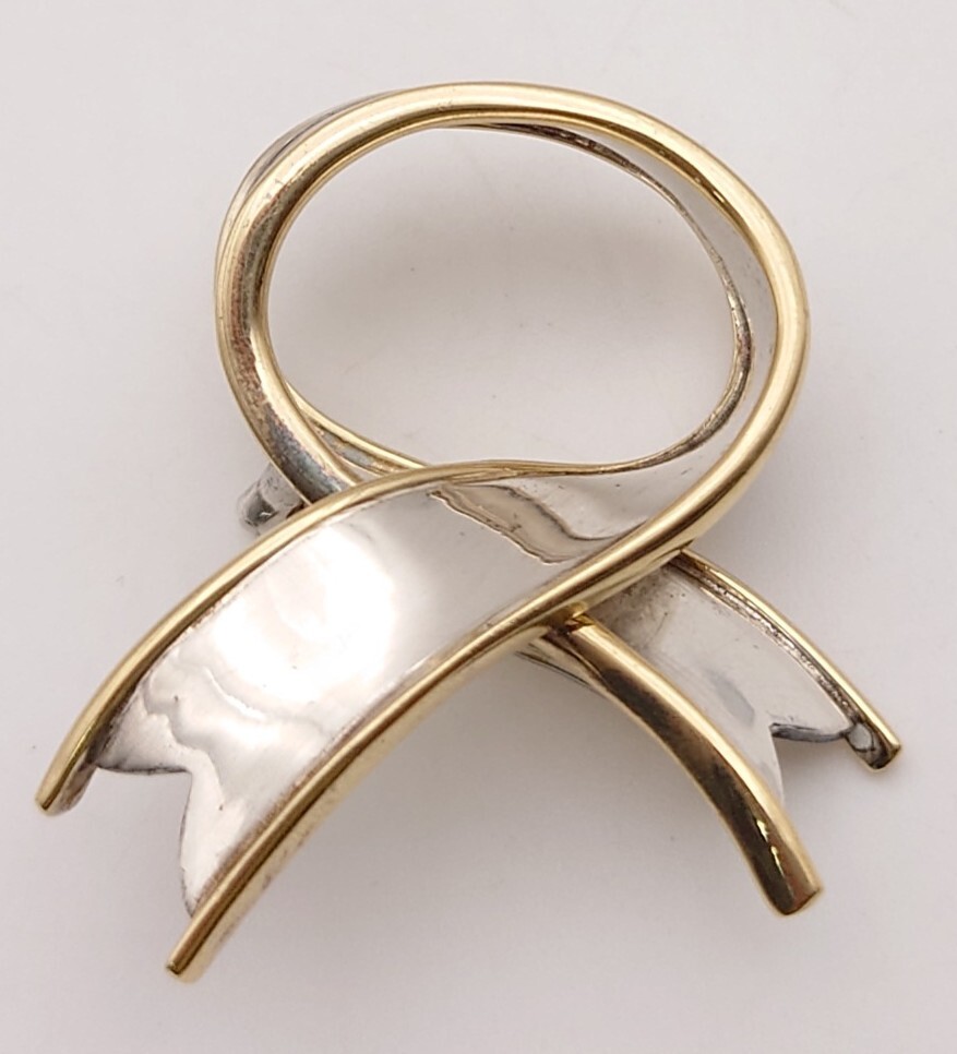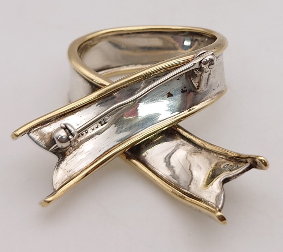【SR-933】 TIFFANY&Co. リボン ブローチ ティファニー SILVER 925 18金 750 刻印 金製品 銀製品 約10.6g ゴールド シルバー コンビ