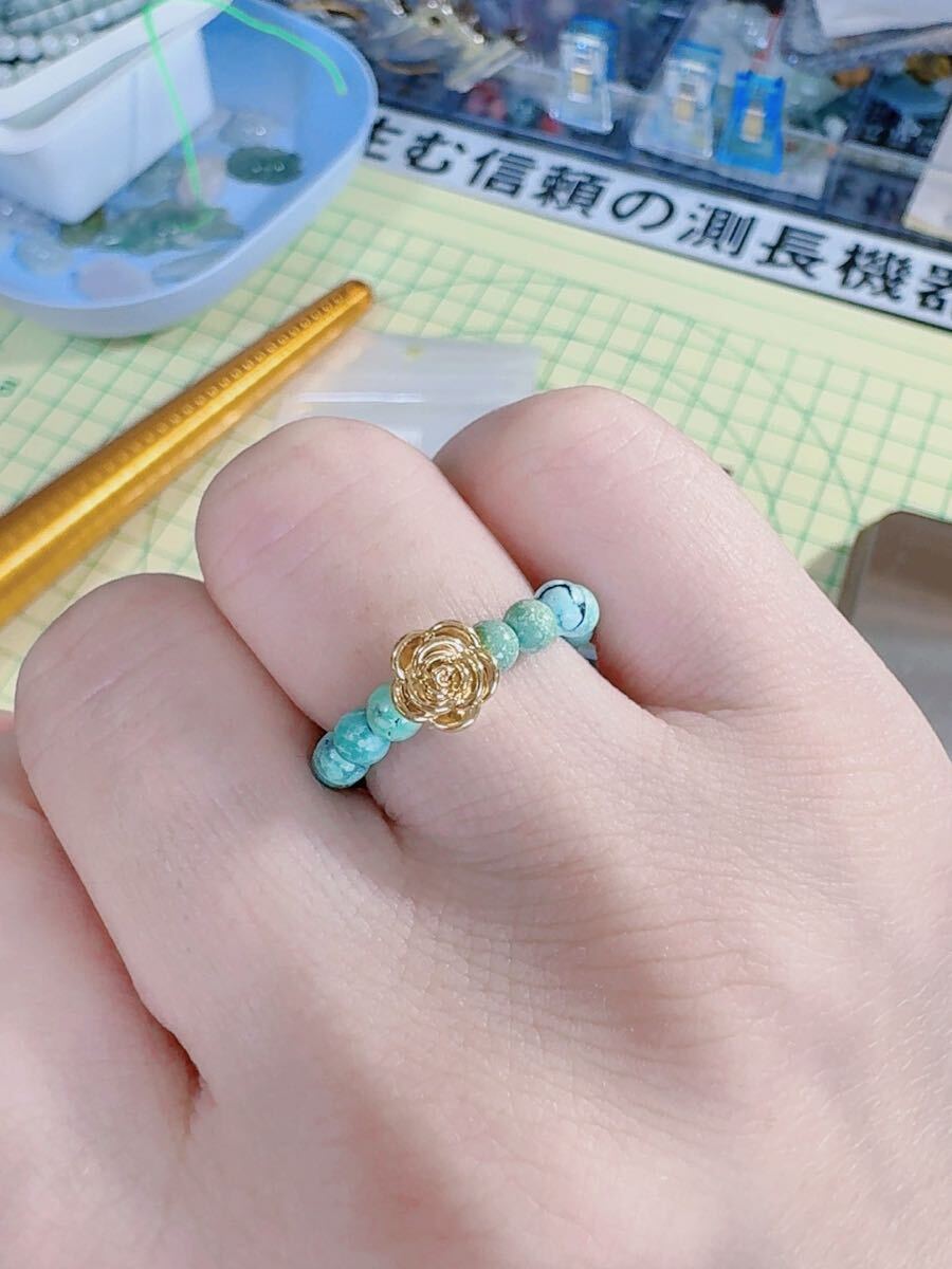 R2-02049 天然石 ターコイズ 指輪 K24《本物保証》一点物 12月誕生 成功 繁栄 縁起物 一品一図 パワーストーン