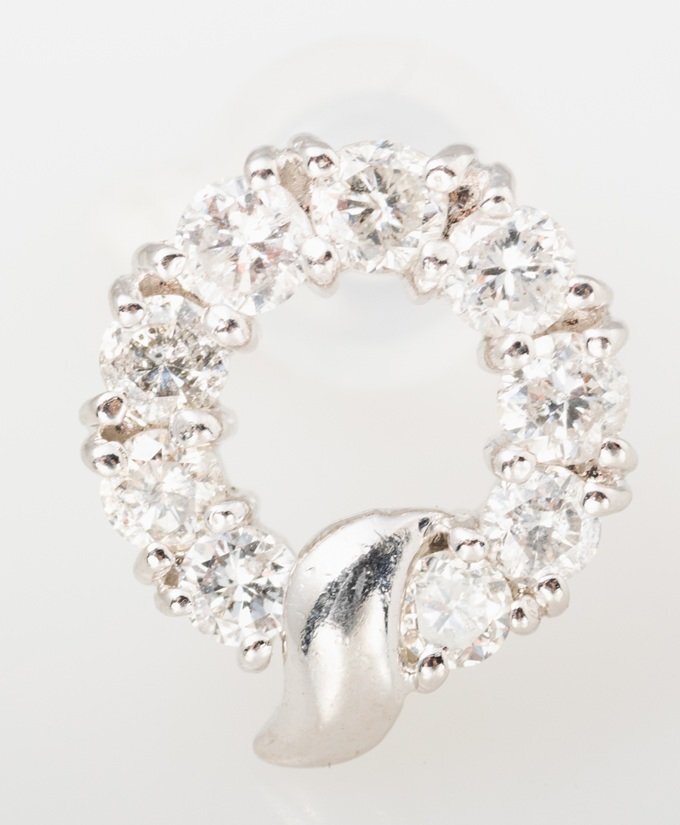 説明サークル状のプラチナ(900)の枠に、ダイヤモンドを敷き詰めたピアスです。
