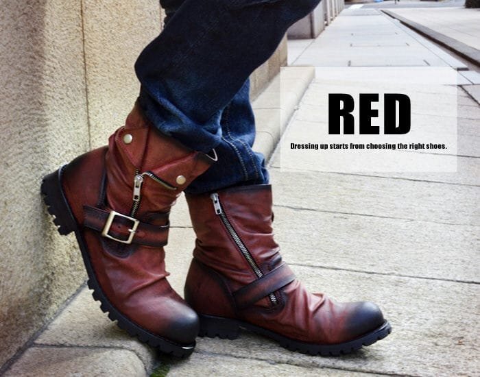 エンジニアブーツ ドレープ ビンテージ サイドジッパー バイク バイカー ライダース ベルト 黒 赤 ショート ミドル 着脱簡単 ze319