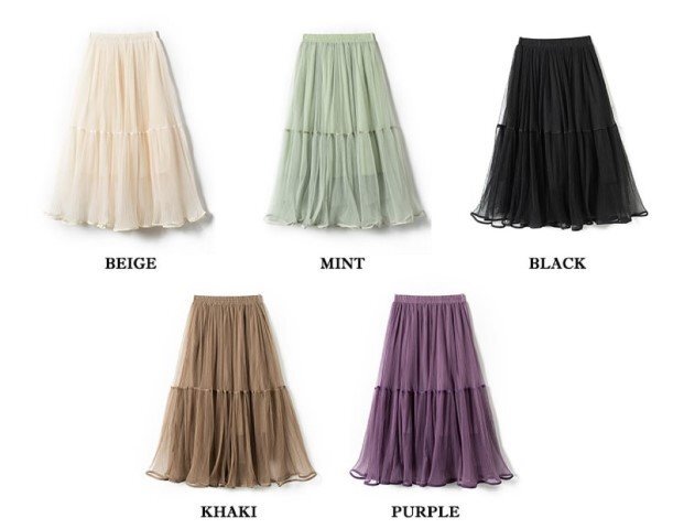 ロングスカート チュールスカート フレア パステルカラー きれいめ かわいい レディース フリー ベージュ