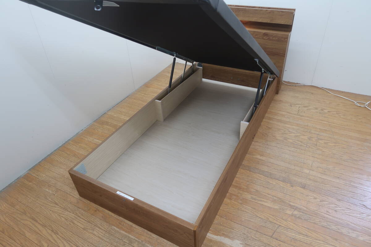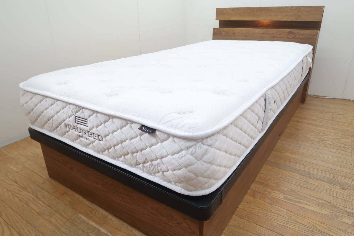 展示/日本ベッド/シルキーシフォン/宮・照明付/リフトアップ/高級モダン/シングルベッド