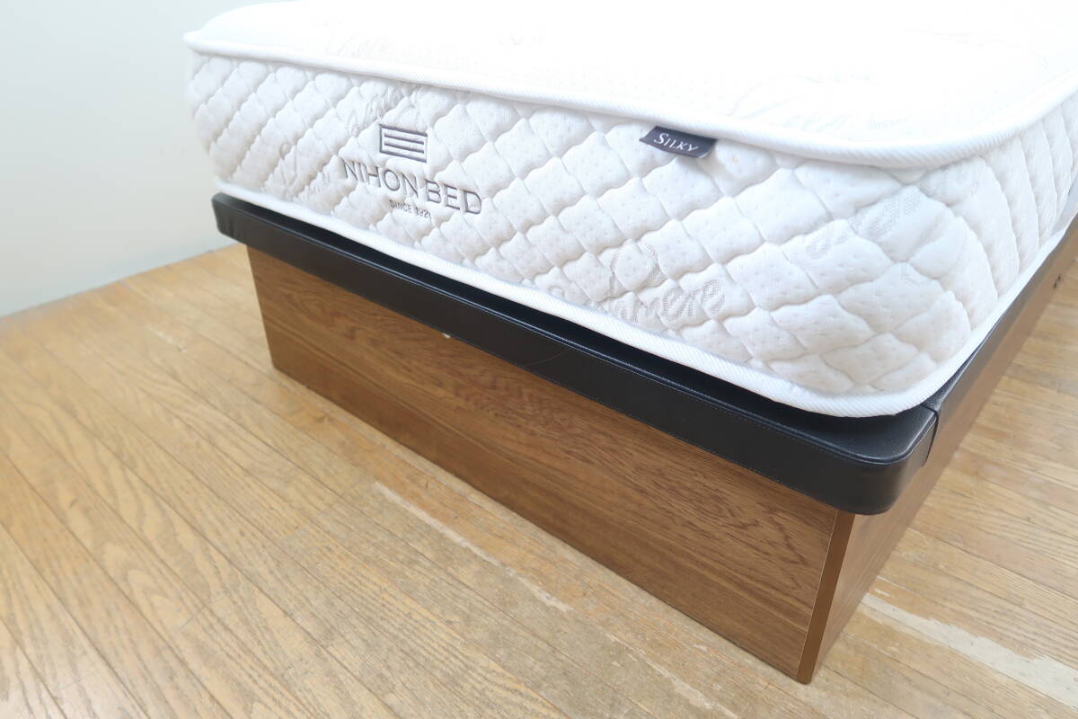 高級ベッドメーカー日本ベッドの中でも上級位になります。シルキーシフォン・マットレスを使用したリフトアップの宮・照明付きのシングルベッドのご紹介です。