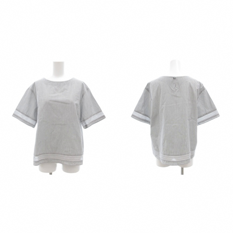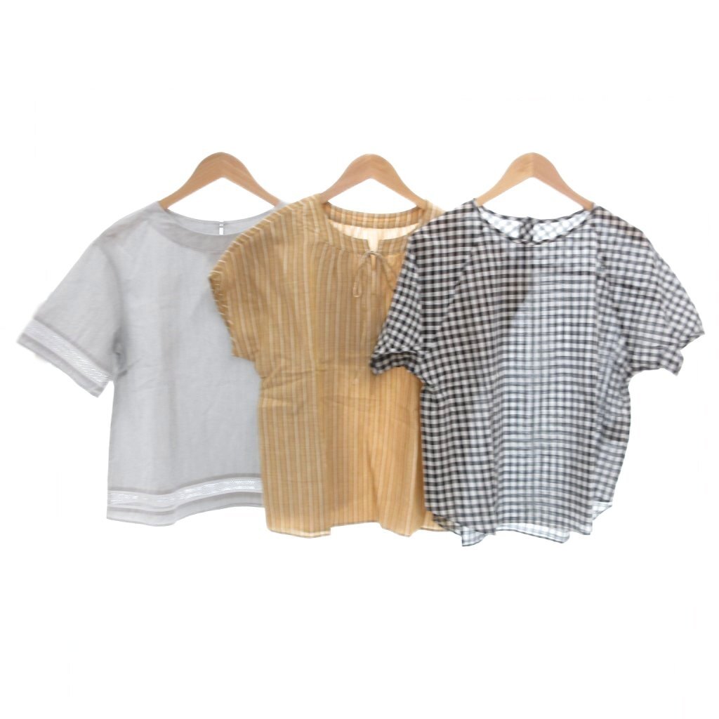 ニューヨーカー NEWYORKER ブラウス カットソー 3点セット まとめ 半袖 チェック ストライプ 9R 茶 ブラウン グレー 黒 ブラック