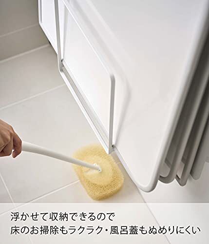 マグネットでお風呂の壁に簡単取り付け。 隙間を空けて乾きやすく干せる清潔な風呂蓋スタンド! 浮かせているので底がぬめらず、お手入れも簡単。 シャッタータイプの風呂蓋も丸めずに広げて収納できるので、カビやぬめりが発生しにくく快適です。 浮かせているので、床のお掃除もラクラク。 風通し良く収納できるので乾きやすく収納できます。