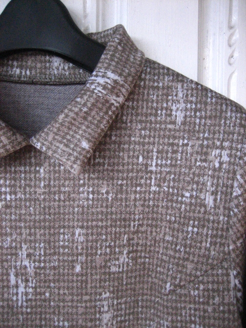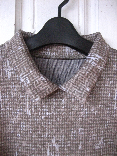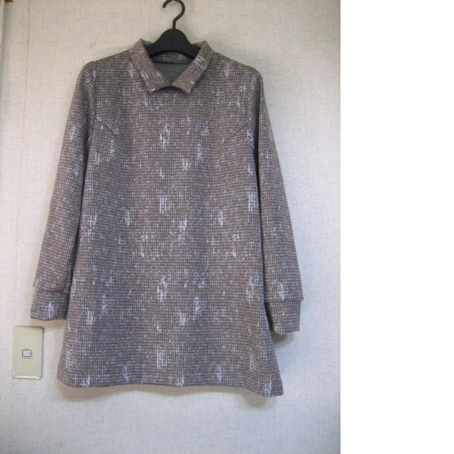 衿幅7.5㎝の小さめの衿、袖口カフス仕上げ、ウエストからのAラインチュニックです。
