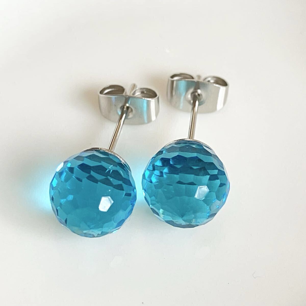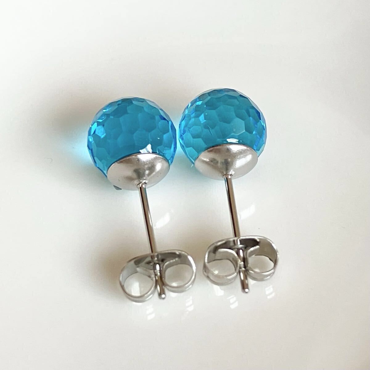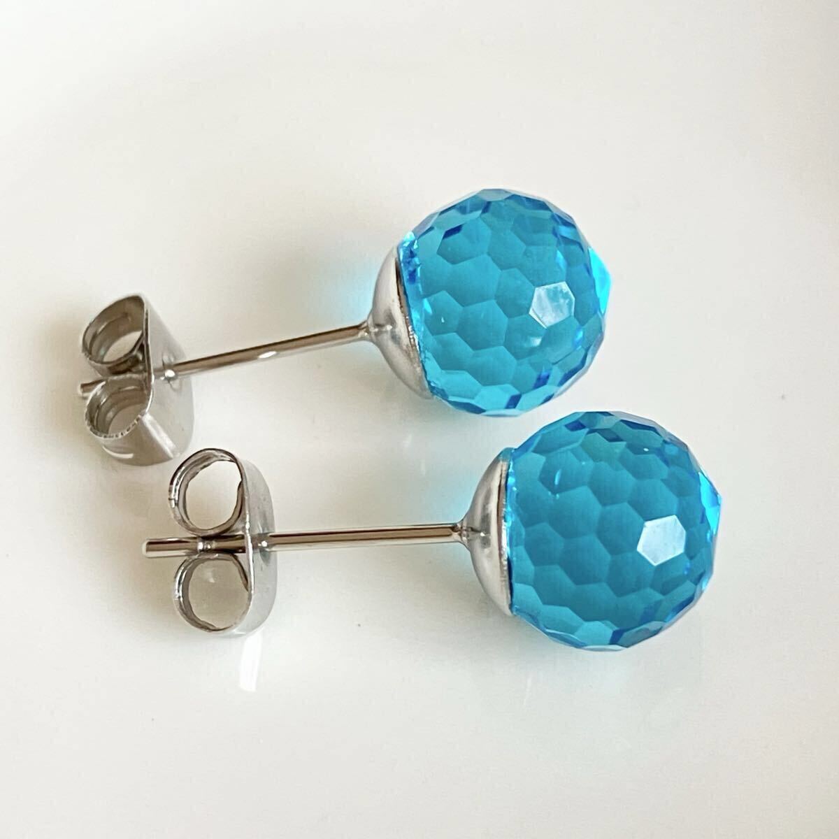 繊細なカットが入ったガラスクリスタルボールのピアスです。光を受けてきらりと輝いて綺麗です。お肌に優しいステンレス製のお品です。