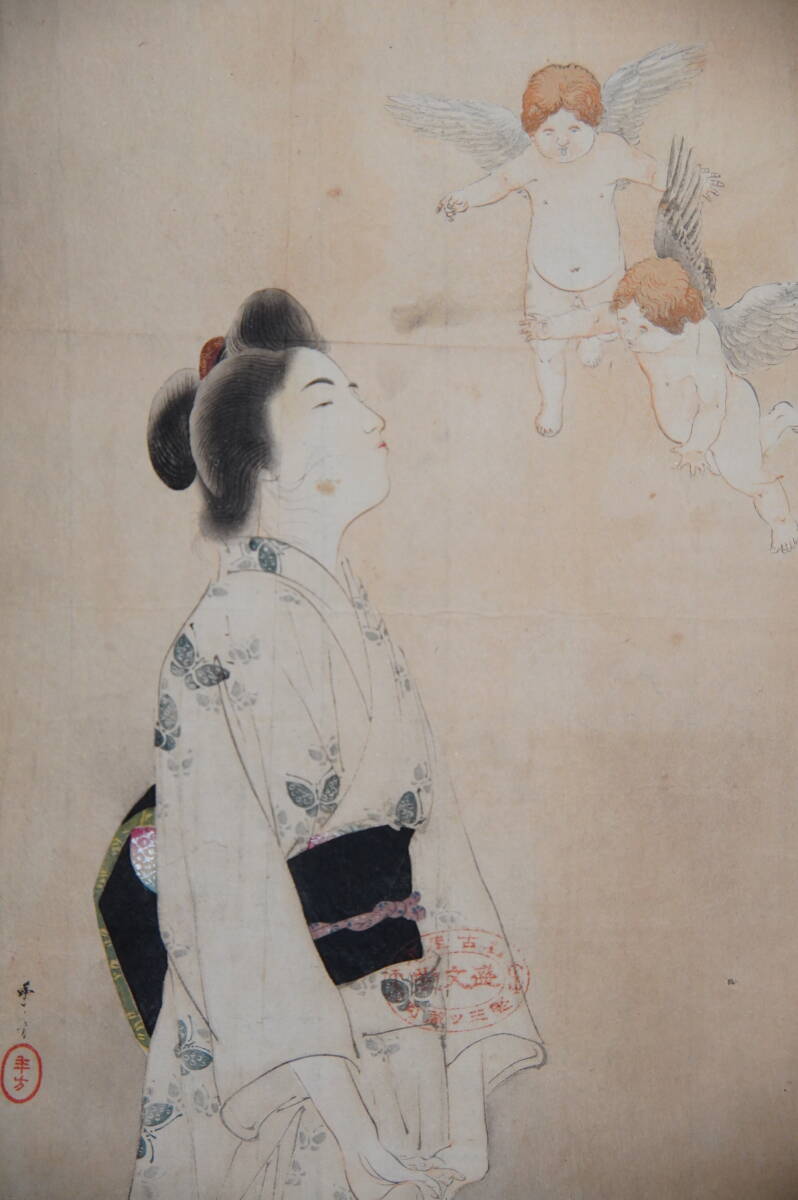 明治期 木版口絵 真作 水野年方 「奇々怪々」三宅青軒著口絵 明治34年