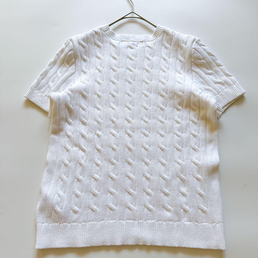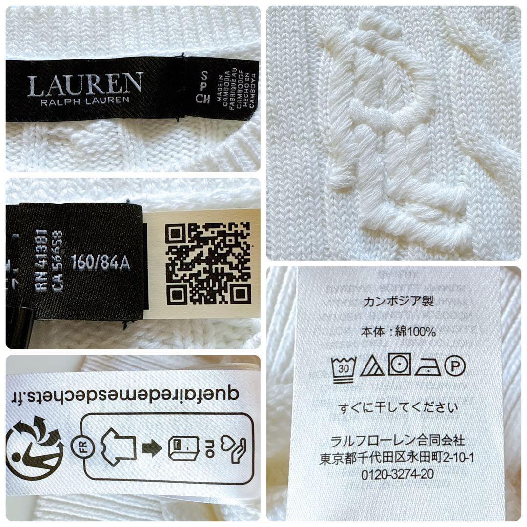 現行QRタグ LAUREN RALPH LAUREN ローレン ラルフローレン ケーブルニット コットン ショートスリーブ セーター クルーネック 半袖 サマーニット 胸元ロゴ刺繍 RL 重ねロゴ ホワイト 白 コットン レディース S ホワイト