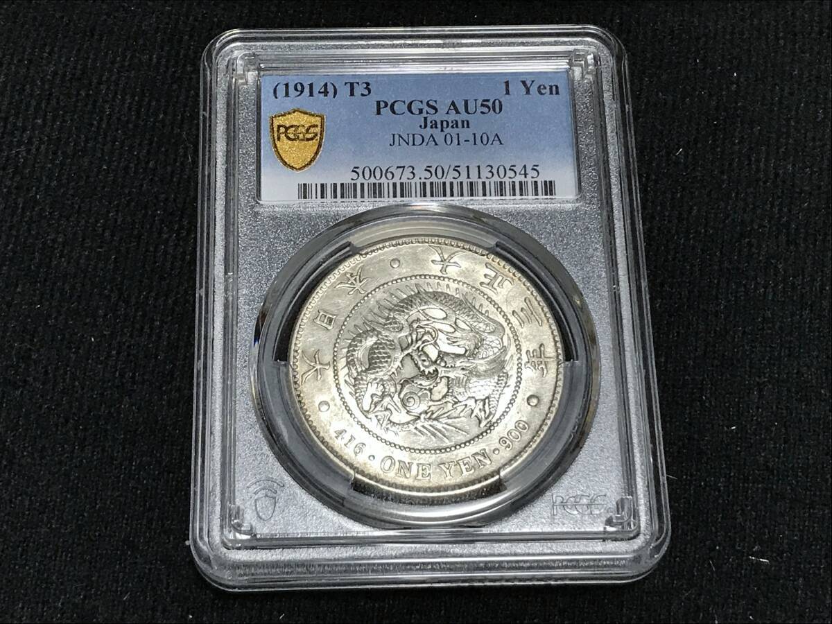 1914年 大正3年 1円銀貨 PCGS AU50 美品鑑定済 アンティークコイン スラブ入り
