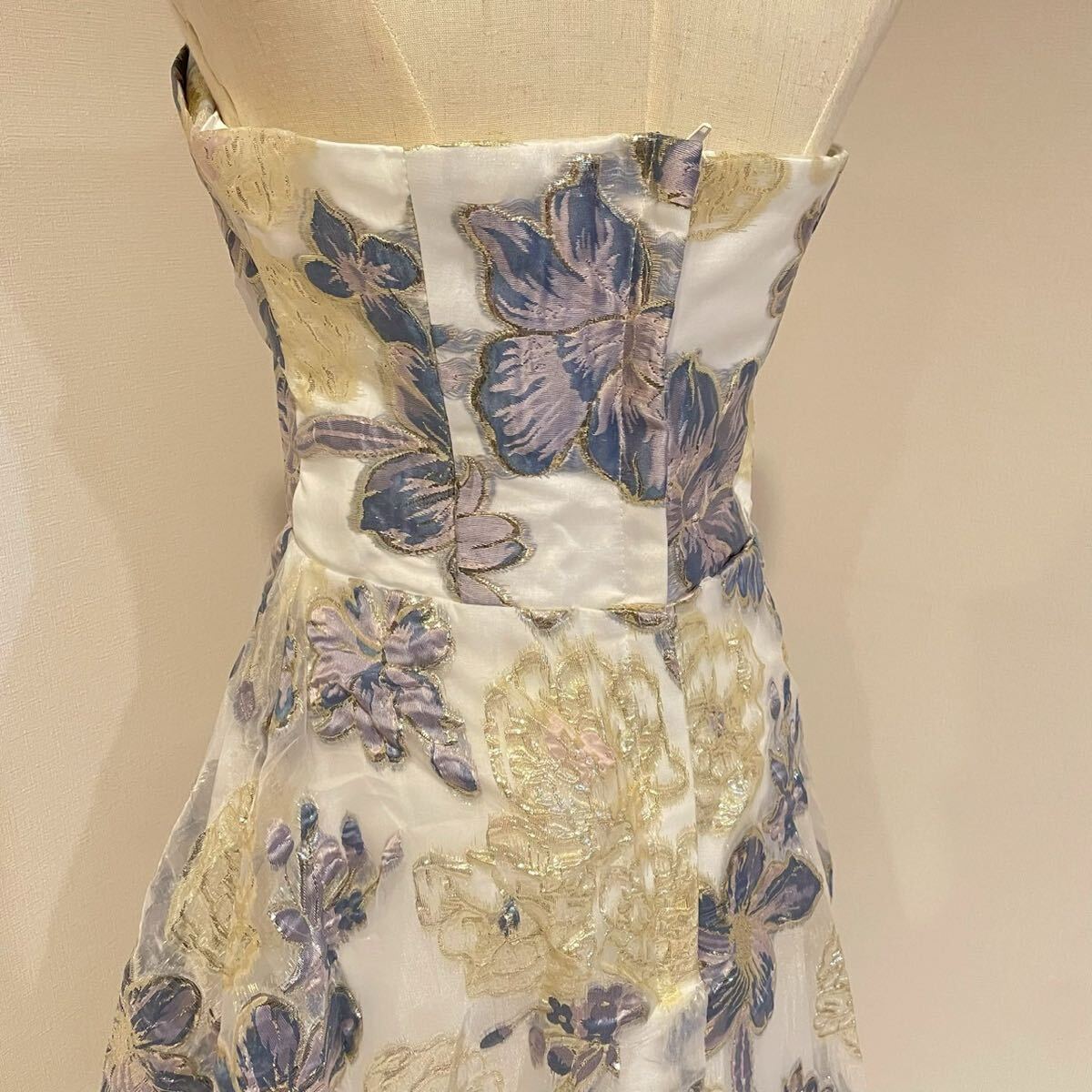 ふんわりと広がるボリュームスカートと、華やかなパフスリーブが上品さを引き立てます!