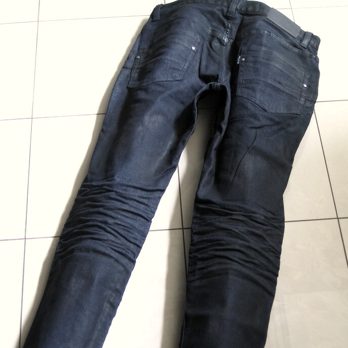 ■通常のデニムより伸縮性がありしっかりと生地が戻るので、履き心地を確保しつつタイトなシルエットをキープする事ができます