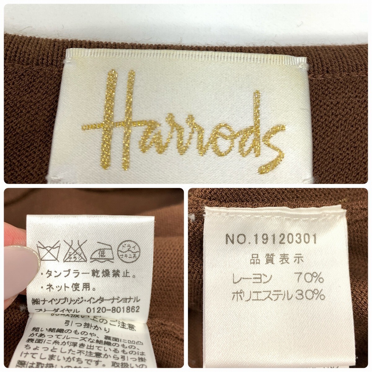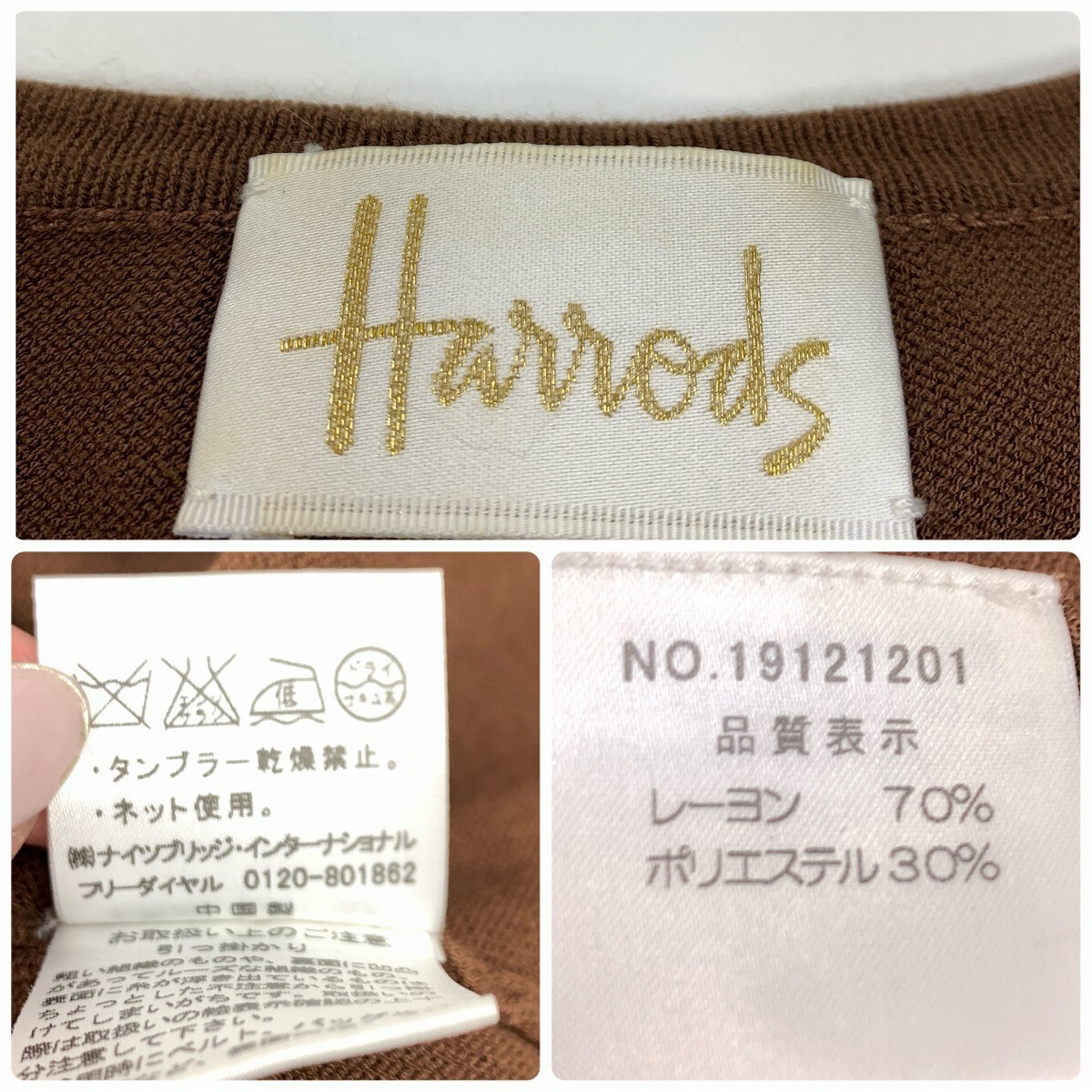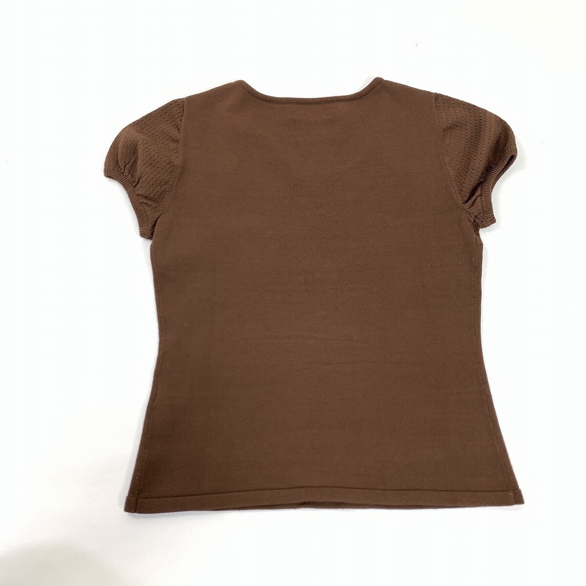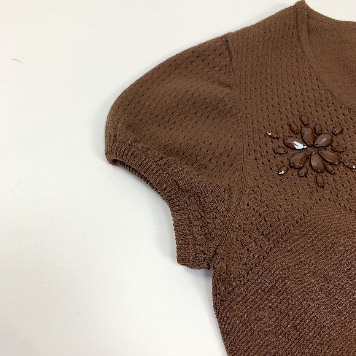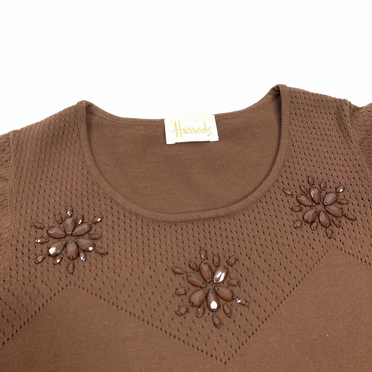 Harrods ハロッズ ニットアンサンブル レーヨン 半袖 七分袖カーディガン ビジュー 茶色 ブラウン M相当 YC1161