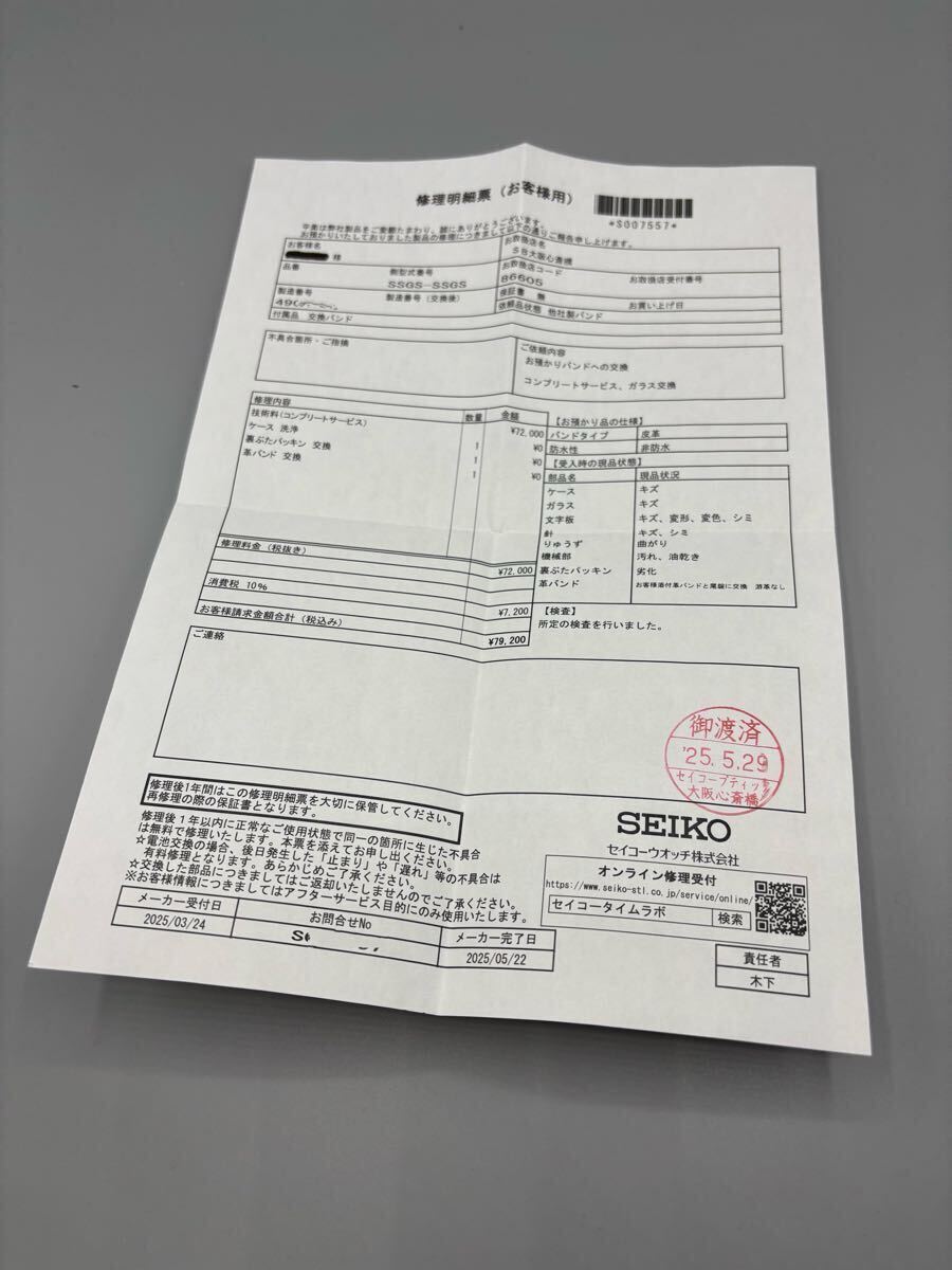 2025年5月にセイコータイムラボでオーバーホール後未使用