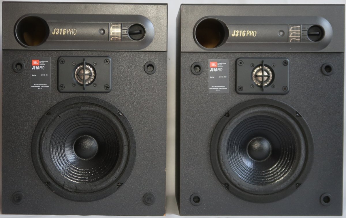 出品は画像の物のみです。使用品ですので擦れや汚れがあります。ブラケットは外した状態なのでご自分でおつけください。片方のネットの下部のつめが2つ折れてとれています。上部2つで外れないようにはなっています。ネットに付いているJBLのマークがとれて無くなっています。カバーを開けるとメインのウーファーの周りに劣化が有ります。中央部分は大丈夫です。この状態で私が持っている機器に接続してテストしました。特に問題なく音はでました。私が聞く分には特に問題ないとおもいましたが、これだけ年数がたっているので新品時の音とは違うと思います。レベルコントロールは3段階調整でつまみを操作すると音は変わりました。普通に音を出せる状態で接続してパワーインジケーター(LED)の点灯はしませんでした。どのような状態でパワーインジケーターが点灯するのかわかりません。出品前にもきちんと基本的な事は問題ないかチェックした上で出品していますが、発送後になにか問題がありましてもサポートは出来ませんし、返品やクレームは一切受け入れられませんのでそれを納得した上で御入札下さい。