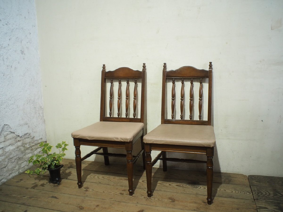タF0497◆②2脚セット◆当時物のレトロモダンな古い木製チェア◆椅子 イス ダイニング カフェ 喫茶店 純喫茶 ヴィンテージ 店舗什器O笹1