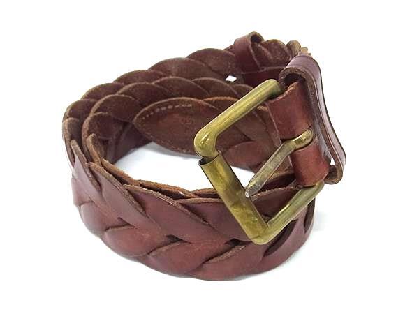 RALPH LAUREN ラルフローレン ヴィンテージ 真鍮 レザー 編み込み ベルト 表記サイズ30/75 レディース ブラウン系 DI9965