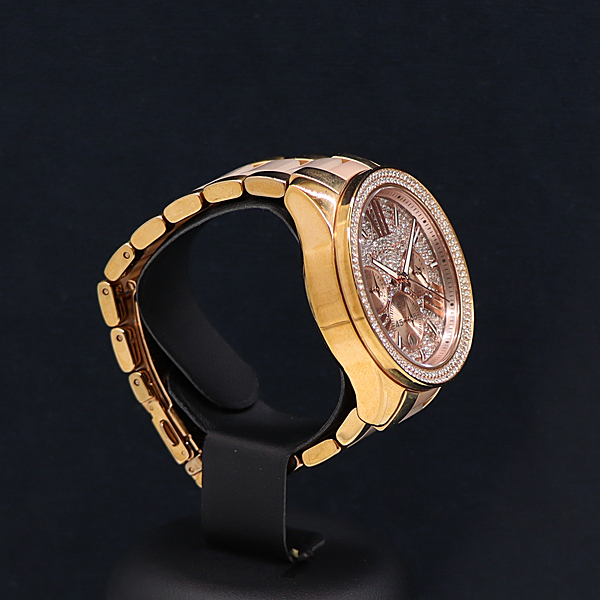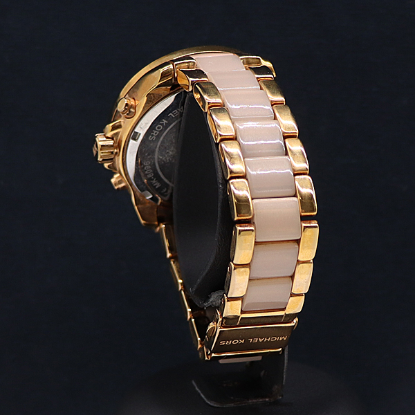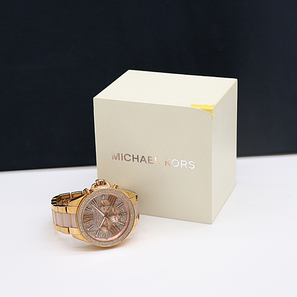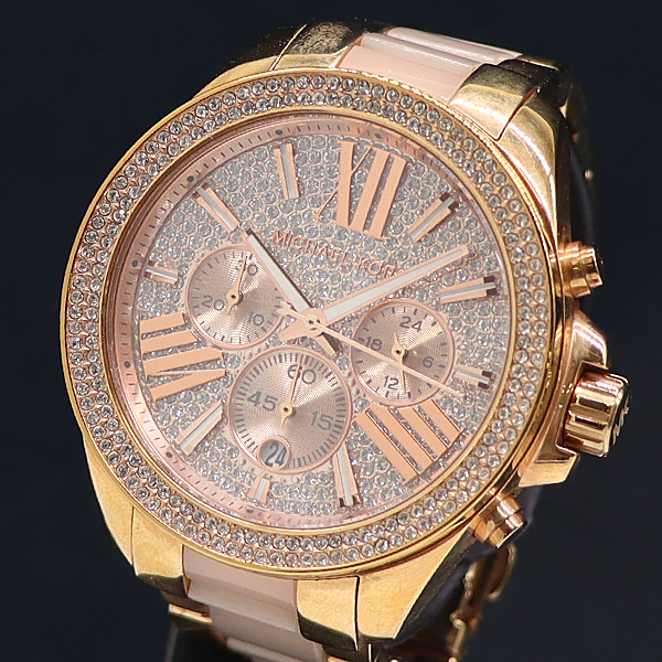 1円 箱付 稼働 マイケルコース QZ ラインストーン ピンク文字盤 MK6096 レディース腕時計 1927000 10NGB KMR