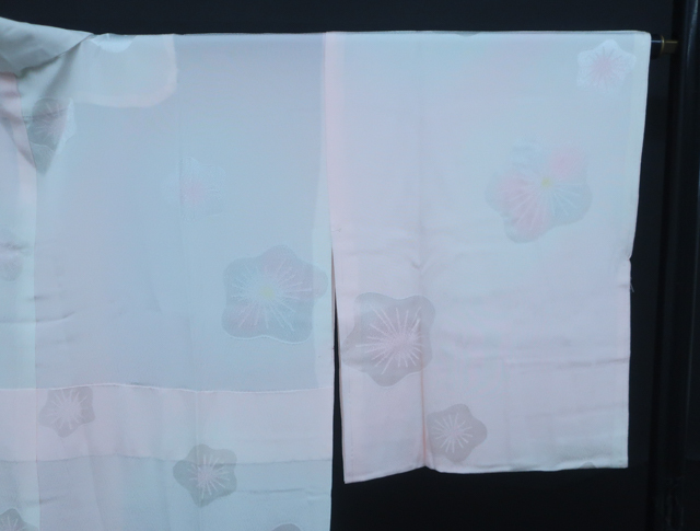 リサイクル商品ではございますが、大変良い状態のお品です。 居敷当て付き、袖無双でございます。 地色は、ピンクです。 1枚目の画像が近いお色かと思われます。 素材は正絹です。 |