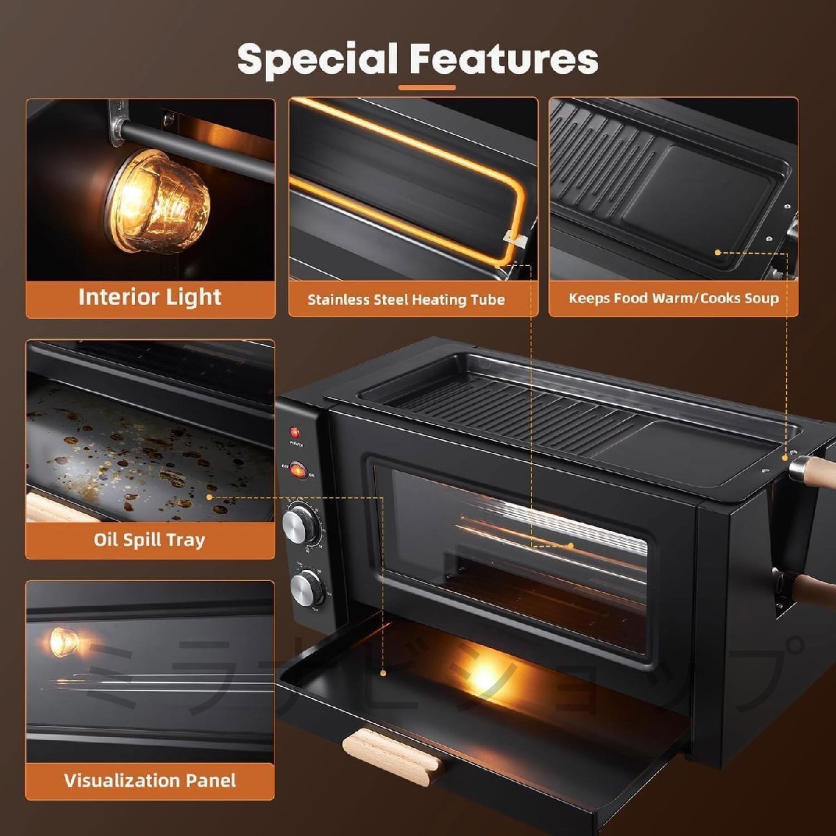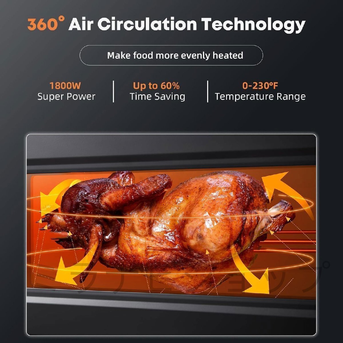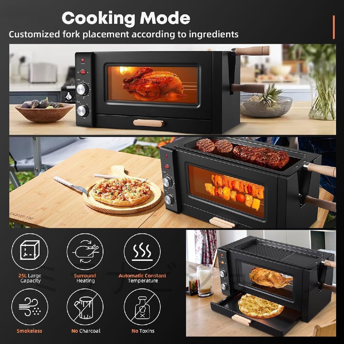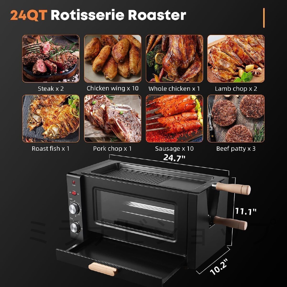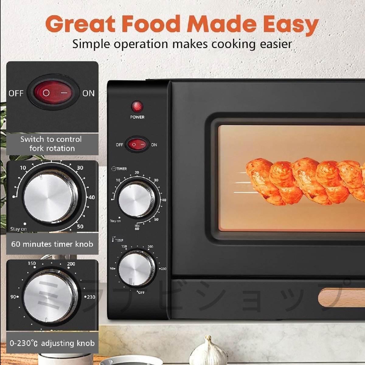 3000W家庭用電気ピザオーブン、25L自動回転ケバブ串機、360°ロースター、60分タイマー、0~230℃温度制御、ステーキ、ピザ、グリルチキン