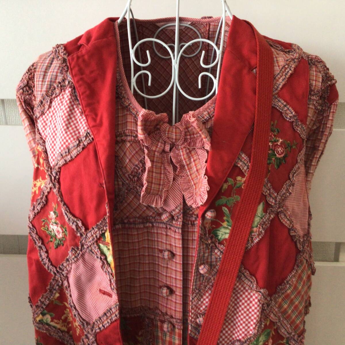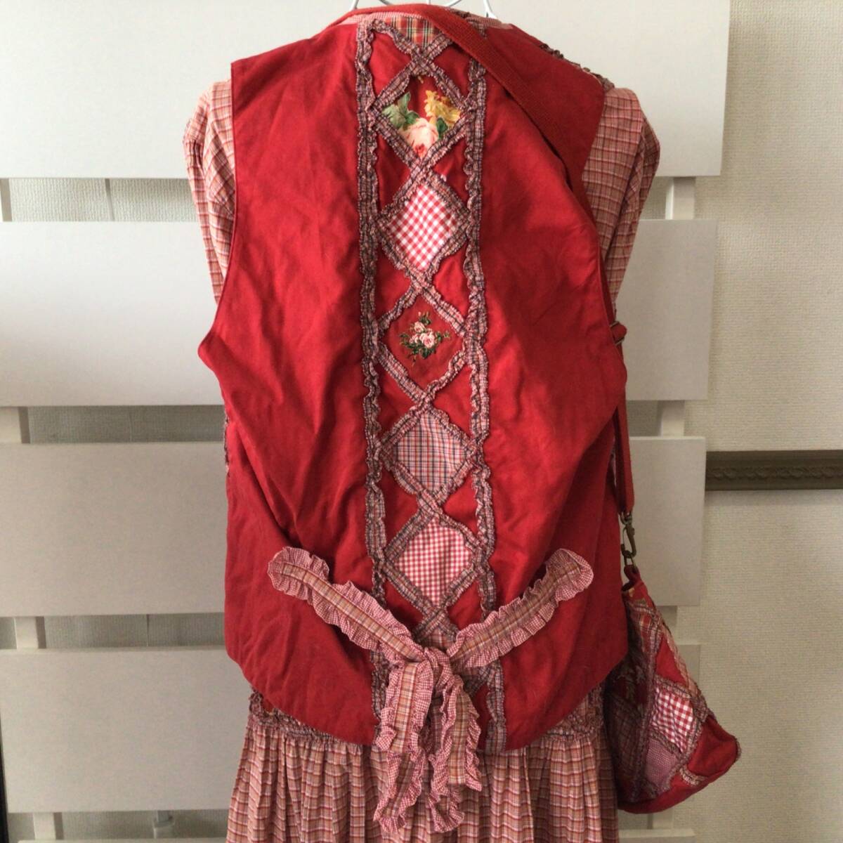 サイズ | 平置きの状態でワンピース 着丈 130㎝ / 肩幅 44㎝ / 袖丈 29㎝ / バスト 41㎝ 〃ベスト 着丈57cm / 身幅42cm |