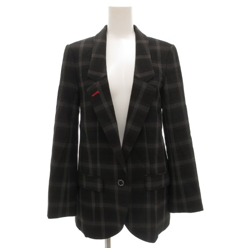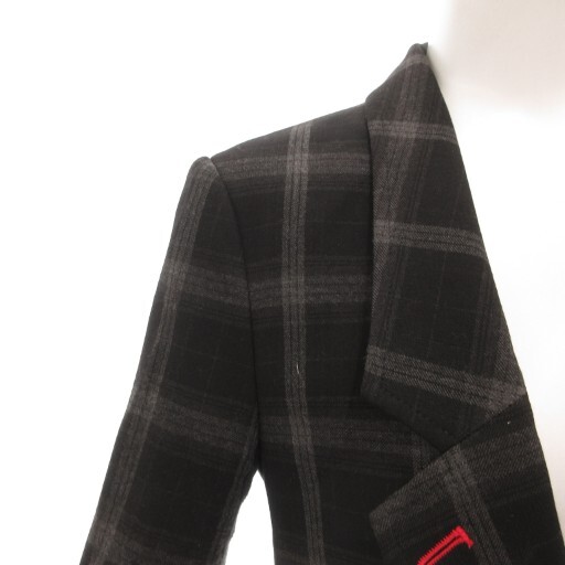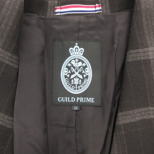 ギルドプライム GUILD PRIME テーラードジャケット 34 黒 ブラック グレー チェック柄 シングル 1B ノーベント /GV レディース