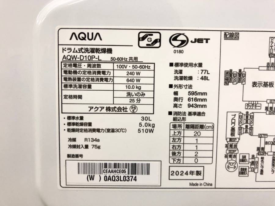 メーカー:AQUA アクア シリーズ:まっ直ぐドラム2.0 型番:AQW-D10P-L 年式:2024年製 洗濯機スタイル:ドラム式洗濯乾燥機 開閉タイプ:左開き ドラムのタイプ:横型 洗濯容量:10 kg 乾燥容量:5 kg 本体幅:59.5 cm 質量:88 kg サイズ:幅595×高さ943×奥行616(排水ホース直付けの場合:666) mm ※仕様の詳細につきましては、メーカーサイトをご確認ください※ |