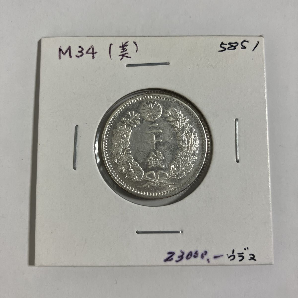 【本物保証】極美品!!近代貨幣 竜20銭銀貨 明治34年 古銭 硬貨 銀貨 アンティーク ホルダー入り★7