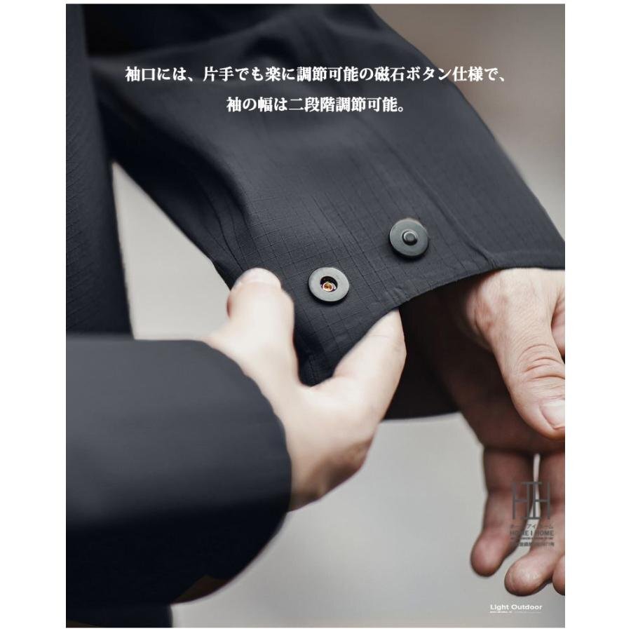 袖口には、片手でも楽に調節可能の磁石ボタン仕様で、袖の幅は二段階調節可能です。