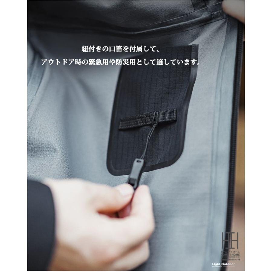 紐付きの口笛を付属して、アウトドア時の緊急用や防災用として適しています。