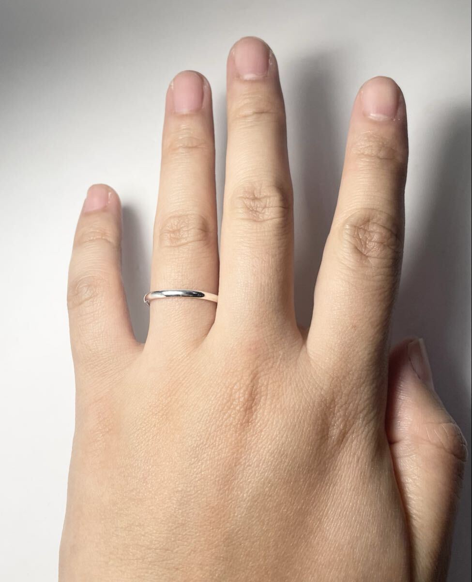 ・幅が広いデザインは通常のリングサイズよりきつく感じますので、0.5~1号程度大きめのサイズが良い場合があります。