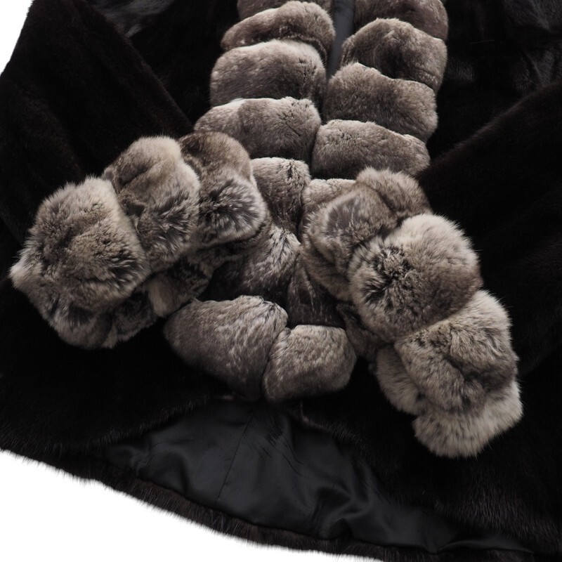 GS1693■4つ星 アメリカンウルトラ アメリカンファーアワード チンチラ × MINK ダークミンク ミドル丈 ファーコート 本毛皮 | |||