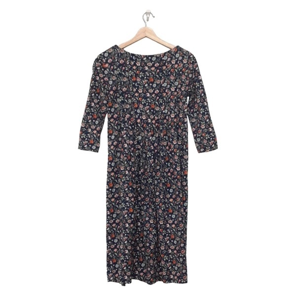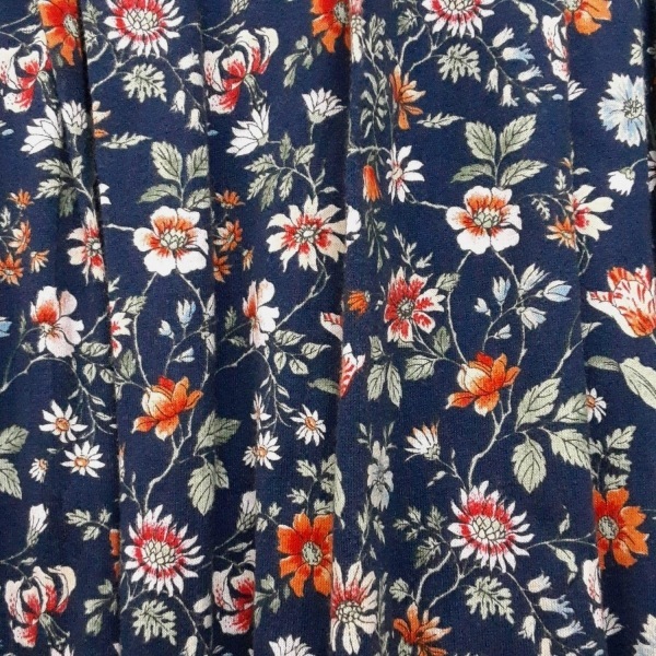 49アベニュージュンコシマダ 49av.Junko Shimada サイズ38 M - ネイビー×オレンジ×マルチ レディース 長袖/ひざ丈/花柄 美品 ワンピース