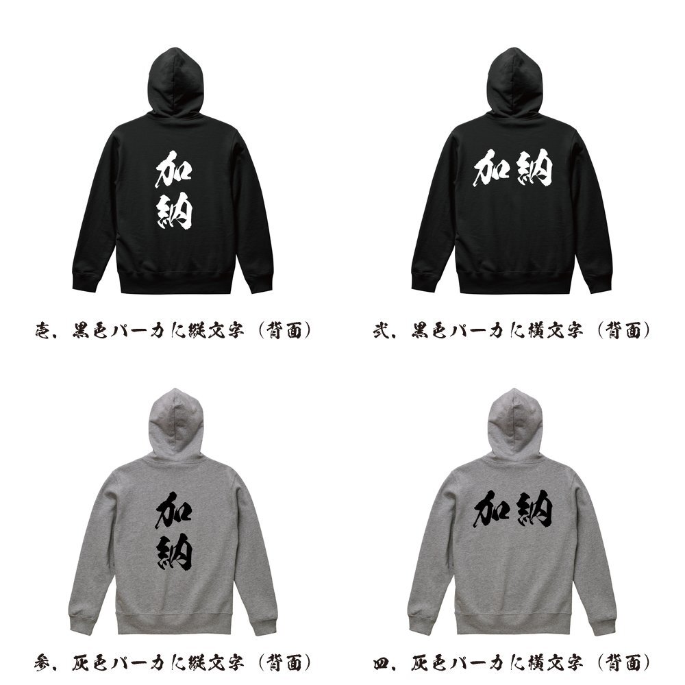 加納 オリジナル パーカ 書道家が書く プリント フルジップ パーカー S M L XL XXL 110 130 150 【 名字 】