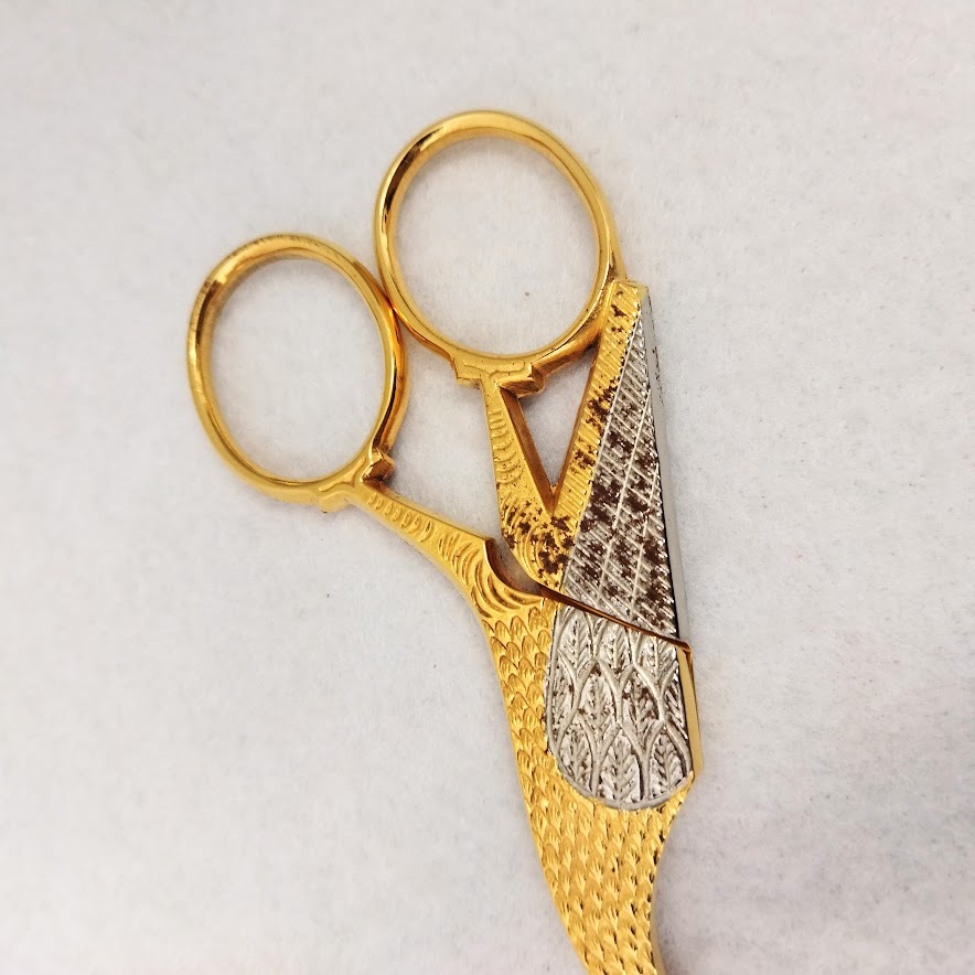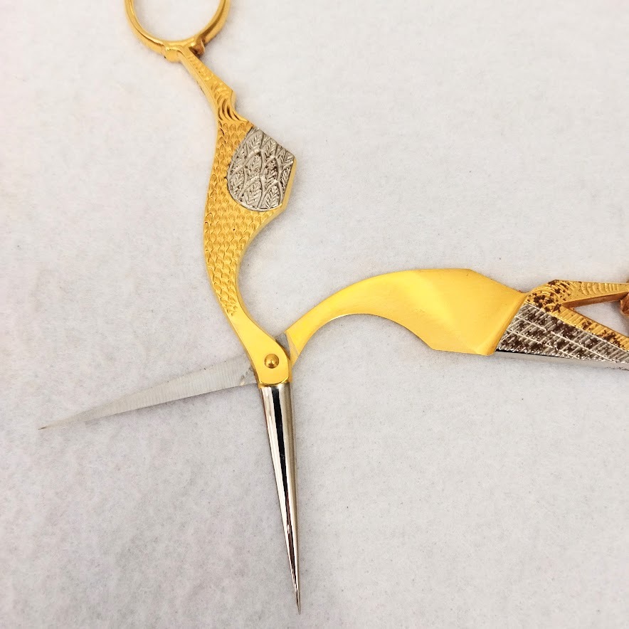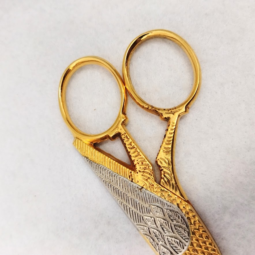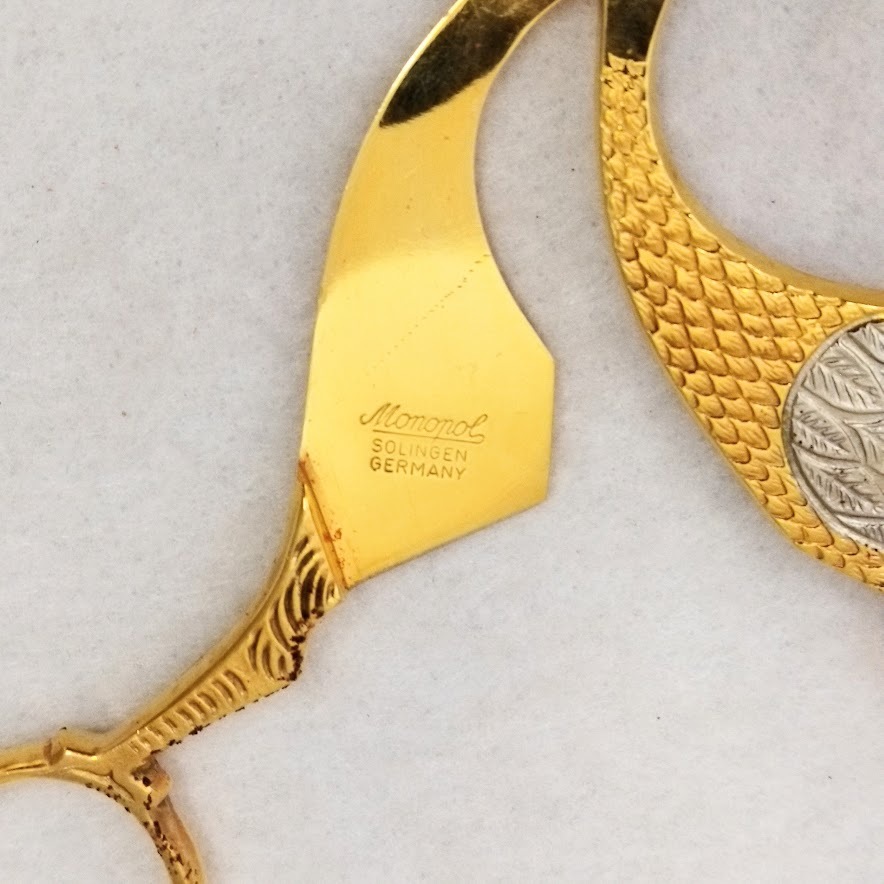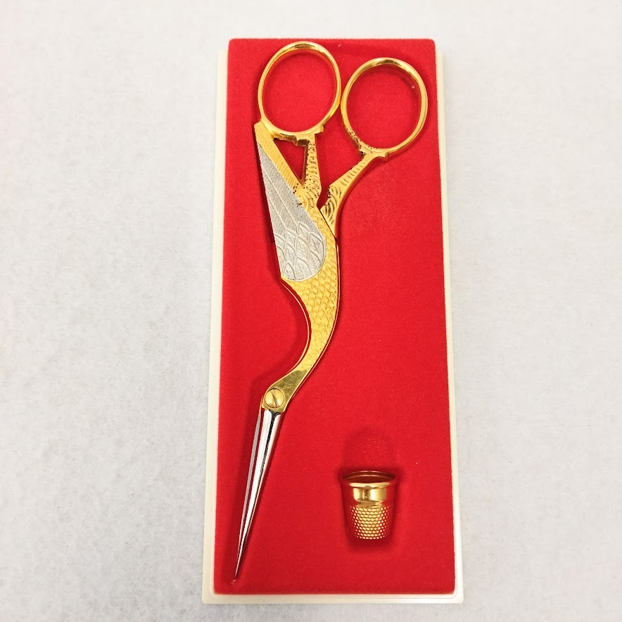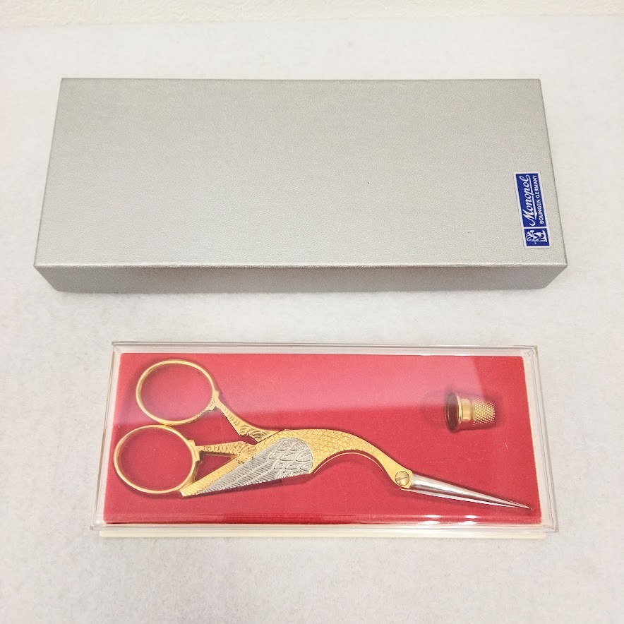 【5129】★1円~スタート★ Solingen はさみ ドイツ GERMANY ゾーリンゲン 鶴 デザイン ハサミ 指貫 手芸 小型ハサミ ゴールドカラー | ||