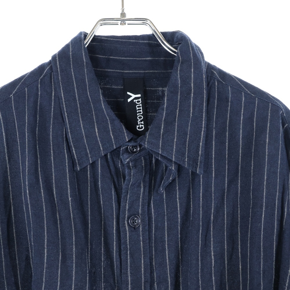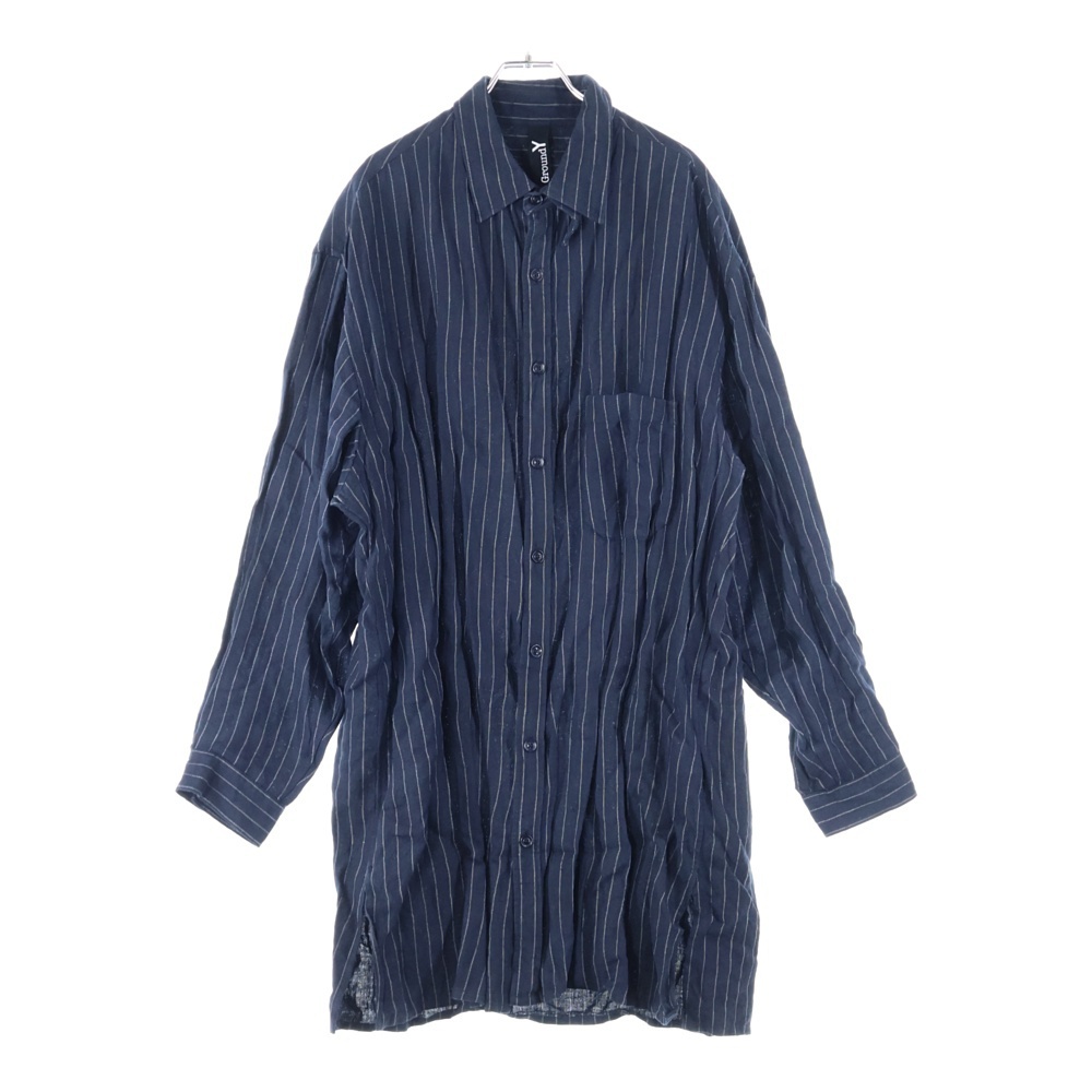 Ground Y グラウンドワイ オーバーサイズ ストライプ長袖シャツ ネイビー GP-B12-300