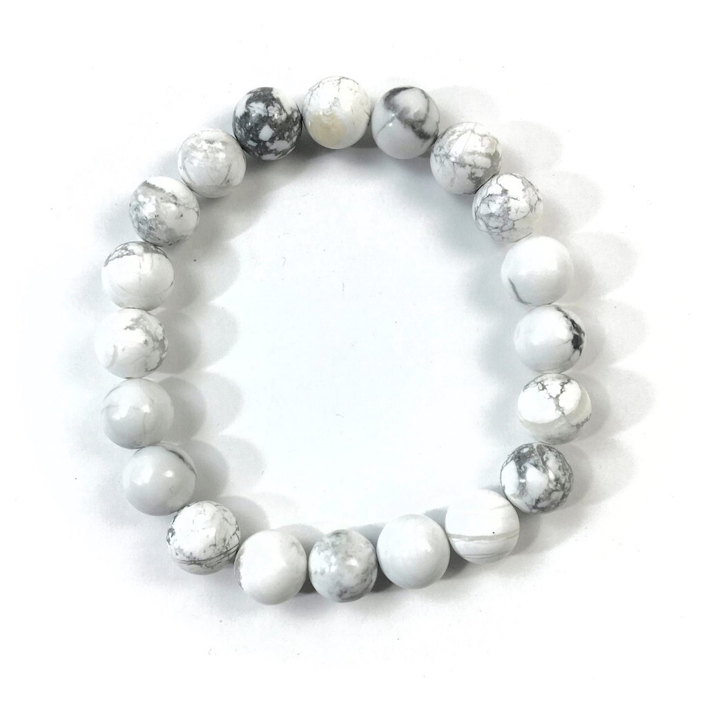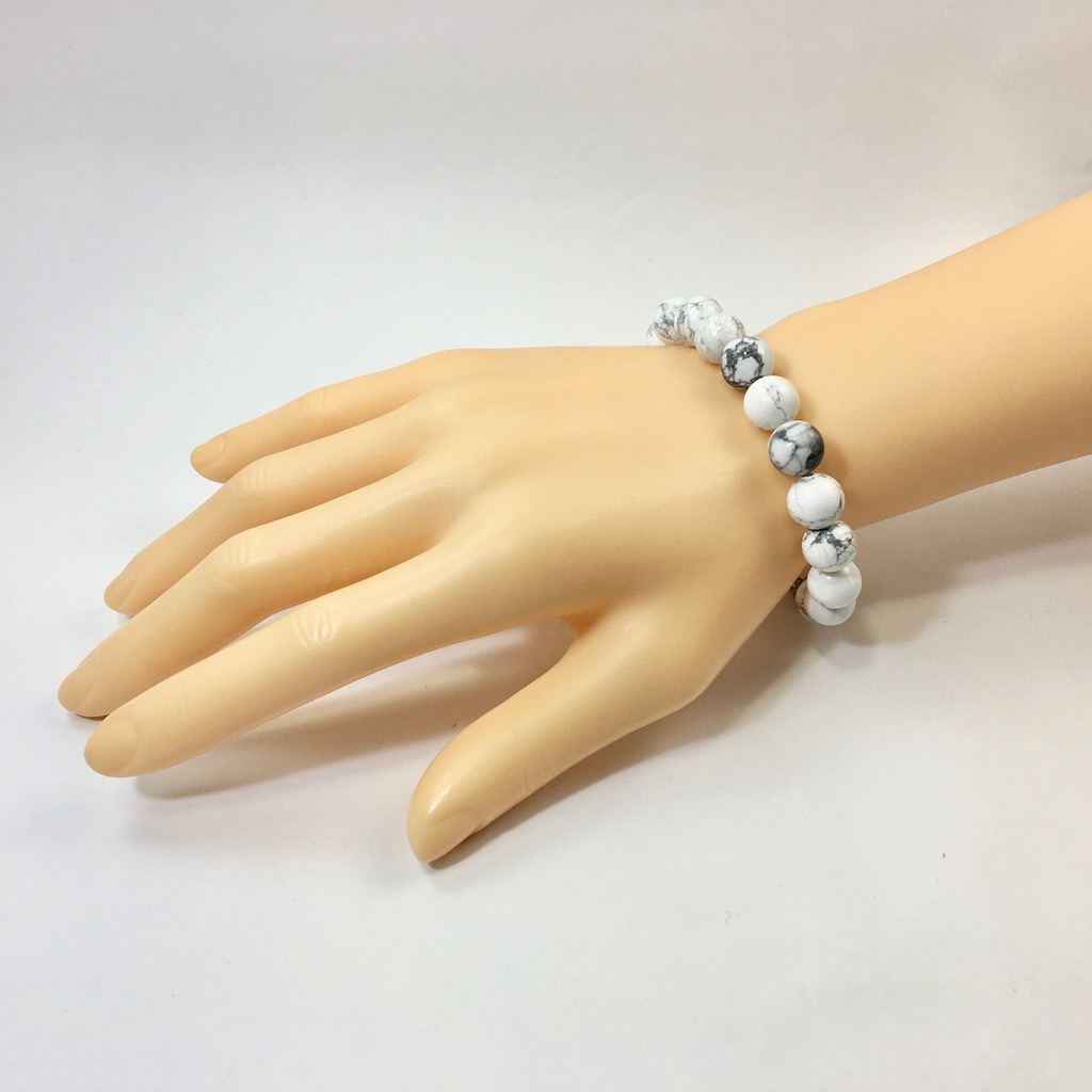 こちらは、ハウライトの10mm玉を使用したパワーストーンブレスレットです。シンプルなデザインですのでどんなコーディネートとも合わせ易いブレスレットです。サイズは内径約17cmです。(サイズ変更の場合は取引ナビにてご連絡をお願いします。) 数に限りがございますので気になる方はお早めにどうぞ。